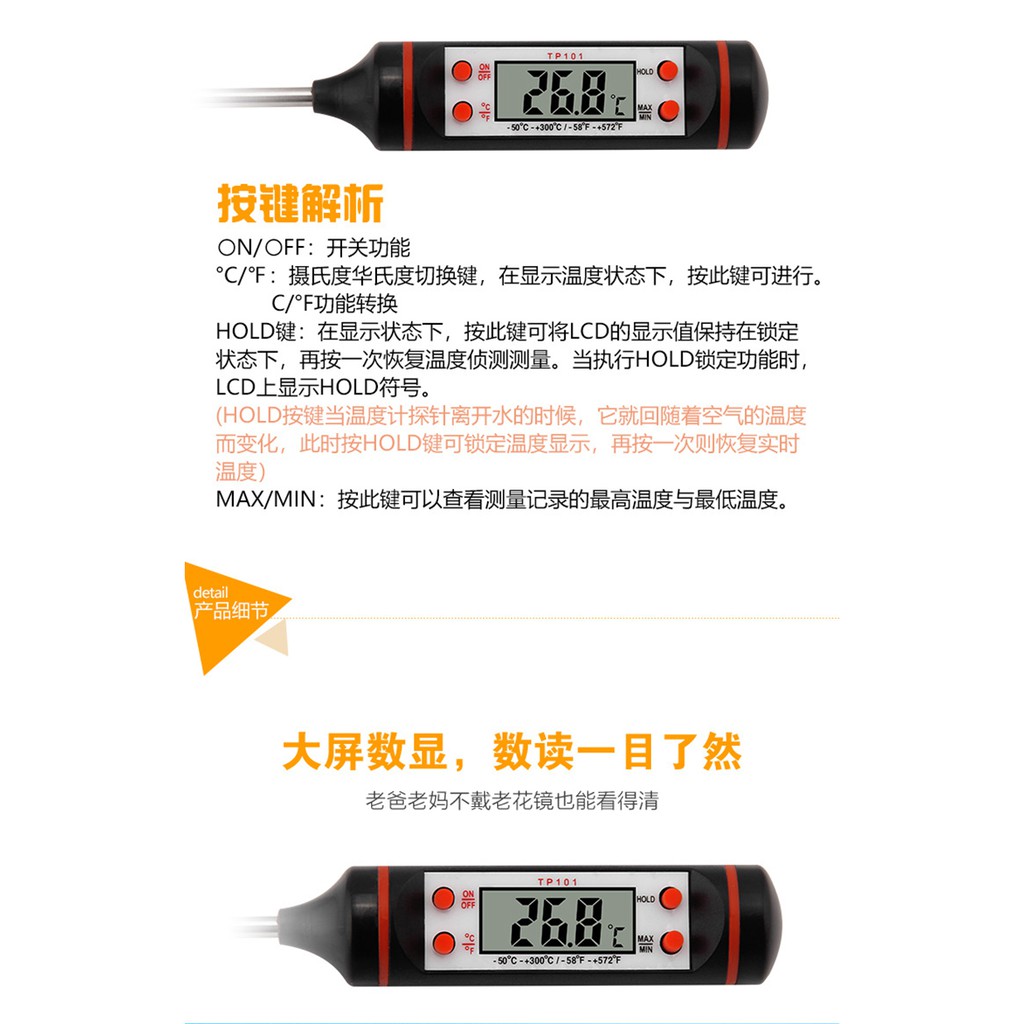 Multi-functions--Celsius (°C) Fahrenheit (°F) free conversion, -50+300 degree range, available for cooling, heating, home kitchen