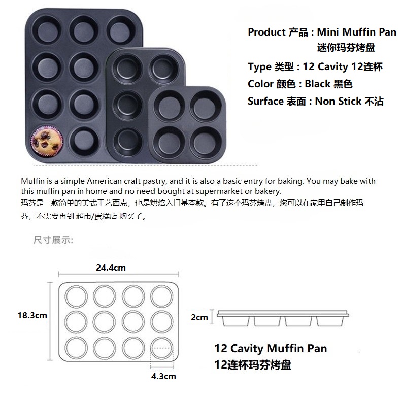 Product Name/产品名称 : 12 Cavity Mini Muffin Pan 12连杯迷你烤盘