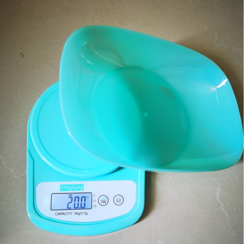 1 . Put kitchen scale to a hard and flat table. 将电子秤放在稳固且平的桌上。