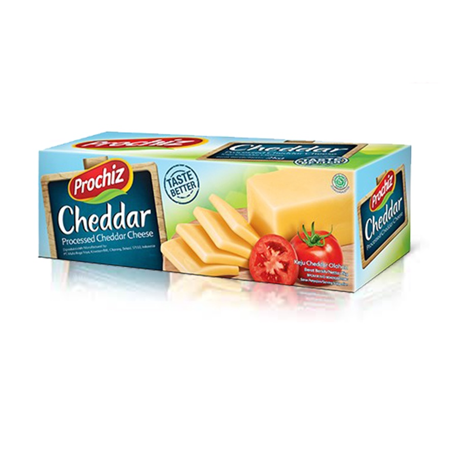 Prochiz Cheddar has a soft and dense texture, making it easy to grate consistently and create longer grated cheese. It is suitable as a topping or filling in many recipes. Prochiz Cheddar is made from high quality New Zealand milk which is processed accordingly based on Indonesian tastebud, making Prochiz Cheddar have a milky, savory, and delicious taste. Prochiz Cheddar 质地柔软而致密,使其易于始终磨碎并制作更长的磨碎奶酪。 Prochiz Cheddar 由优质新西兰牛奶制成,Prochiz Cheddar 具有乳白色、咸味和美味的味道。