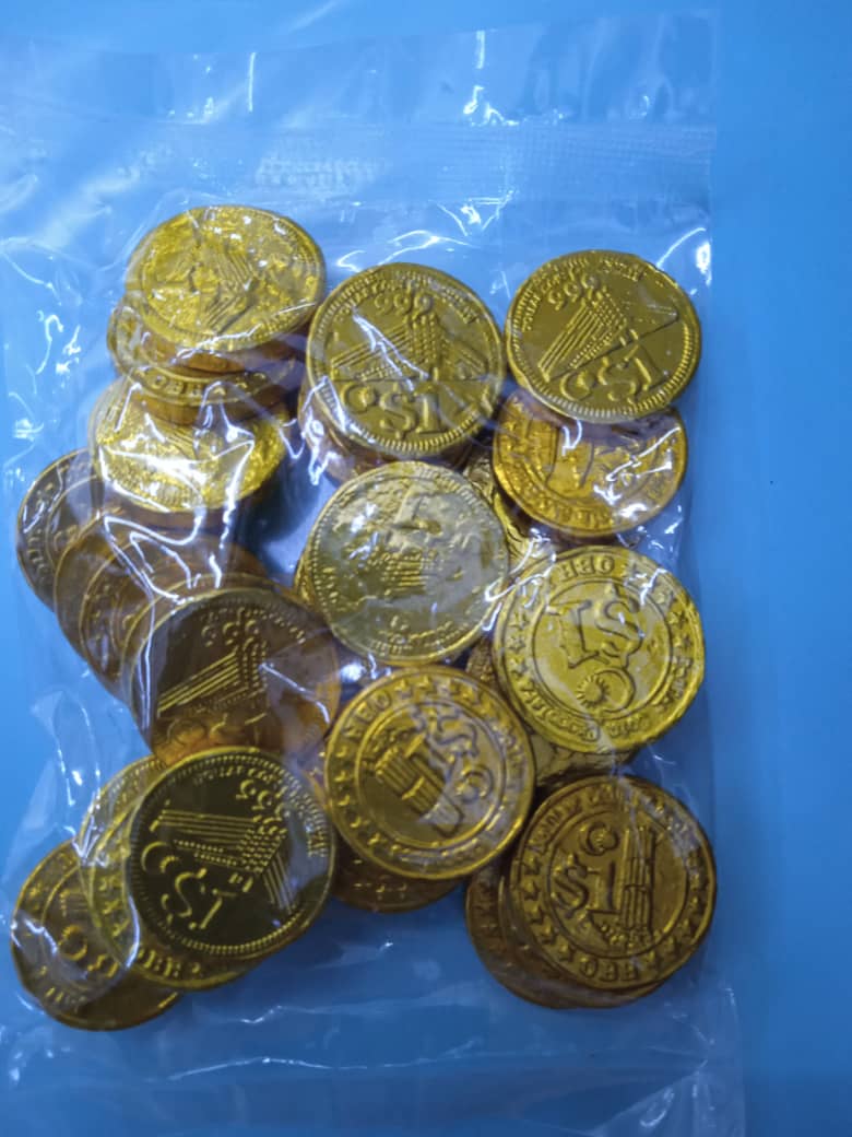 around 30pcs in 100g packaging 100克的包装里有30个金币左右
