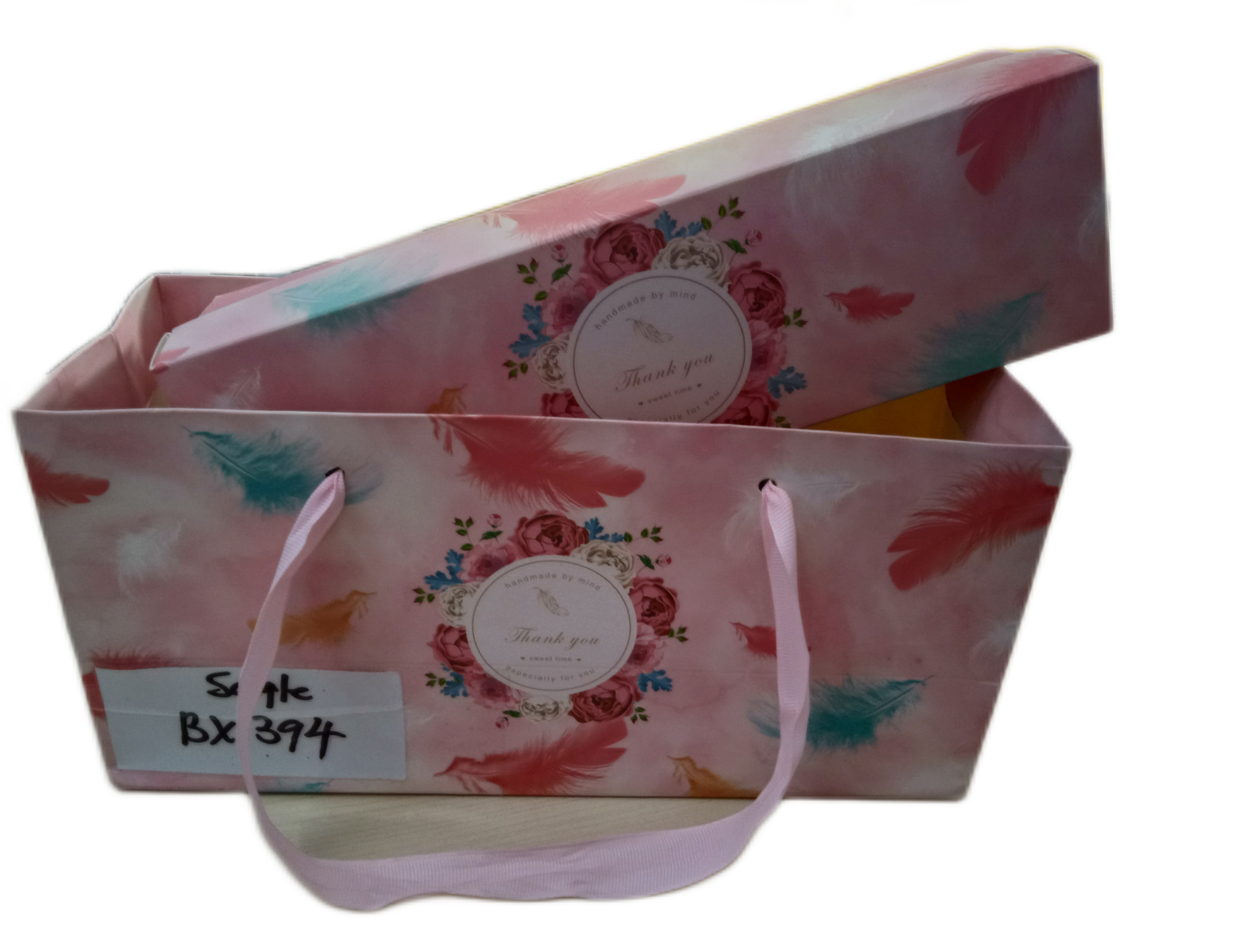 Product Name 产品名称 : BX394 - 4 Holes 50g Feather Rose Box & Bag 4粒装50克月饼盒+袋子(玫瑰羽毛)