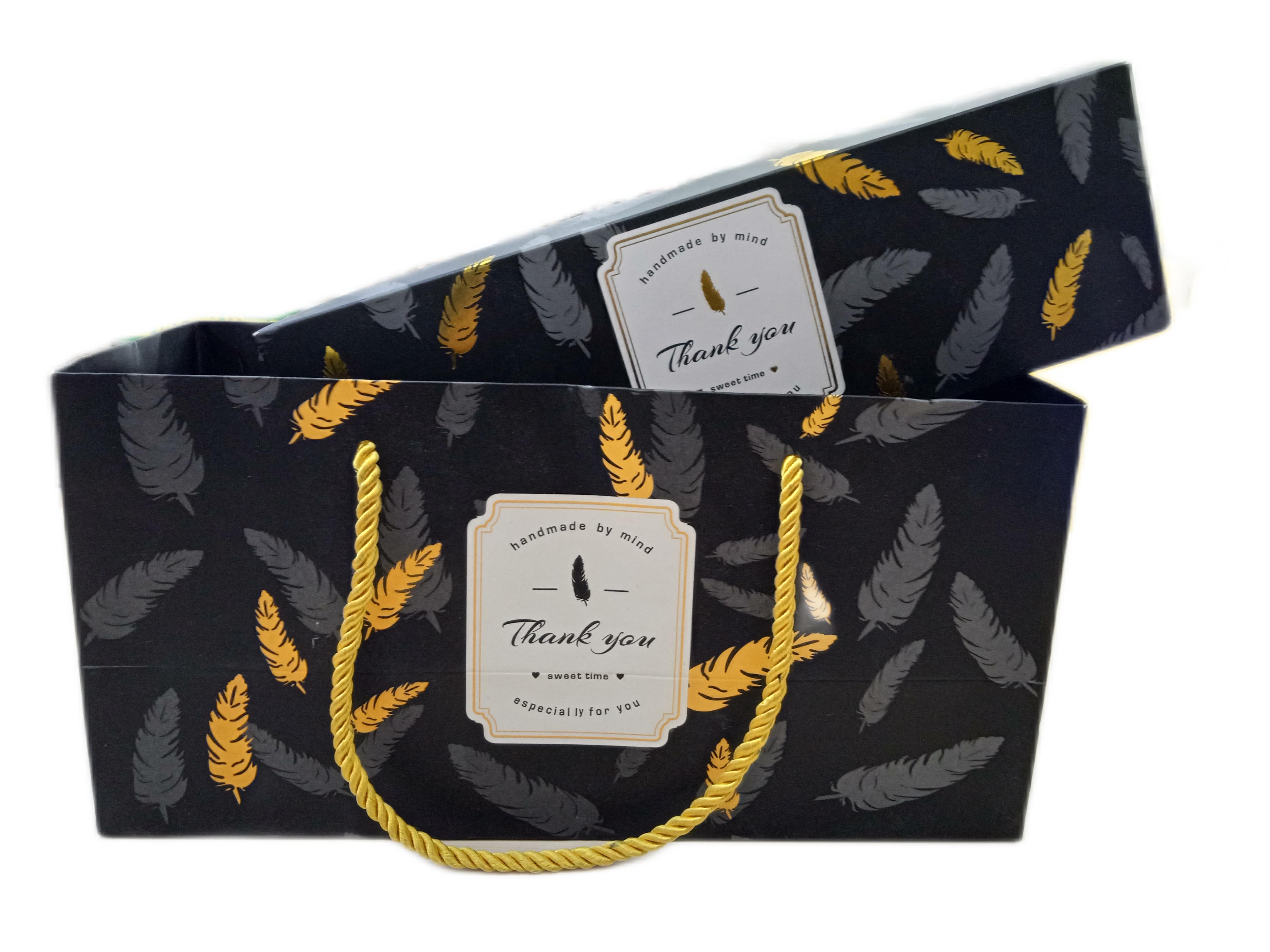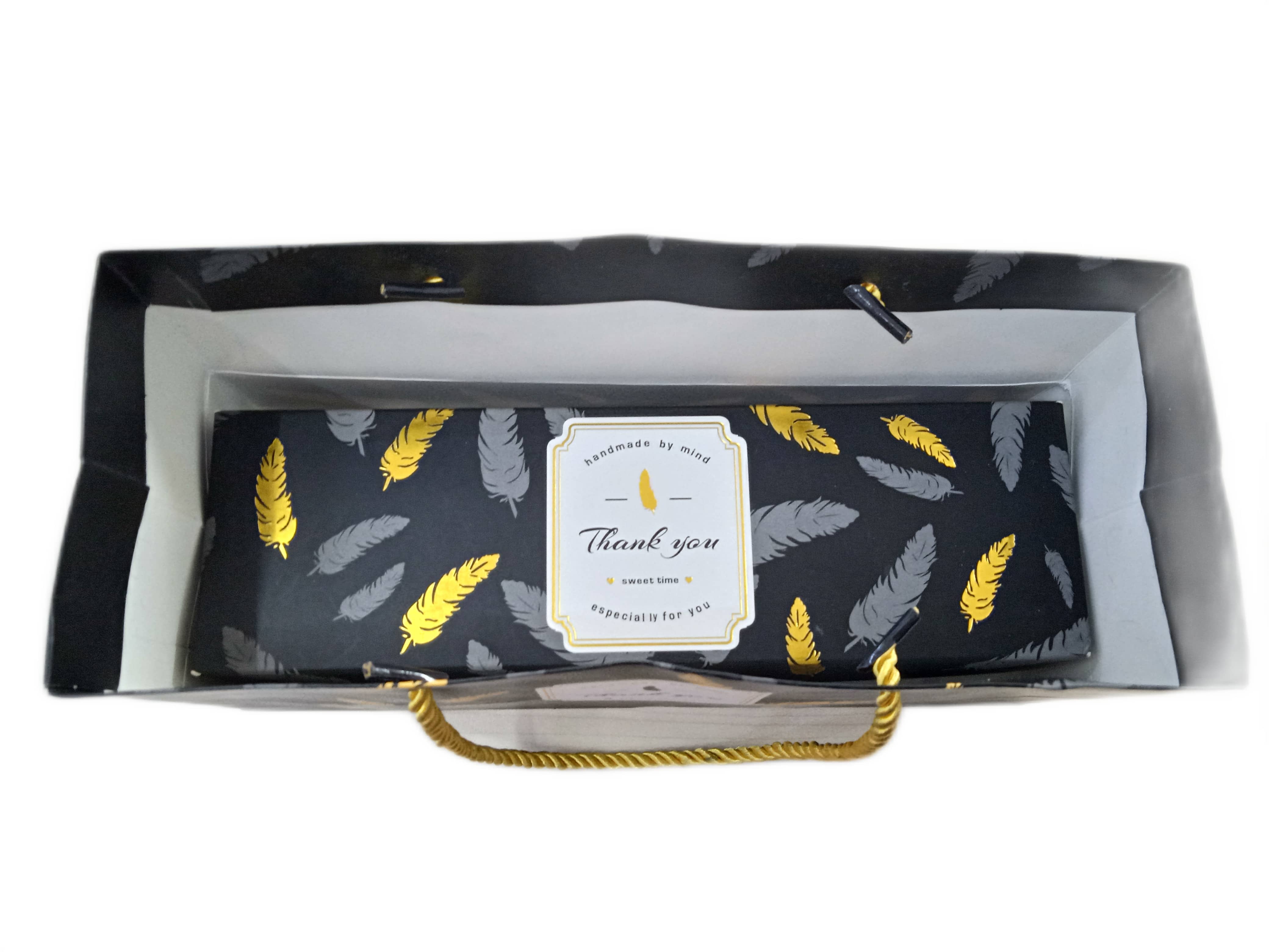 Product Name 产品名称 : 4 holes 50g Black Feather Mooncake Box & Bag 4粒装50克月饼盒+袋子(黑羽毛)