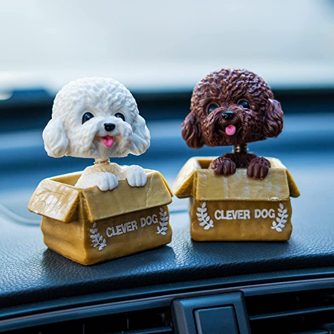 The dog's head and body are spring-connected, head bobs easily and smoothly,as long as there is sligth shake, the dog will nodding or shaking his head.狗的头部和身体是弹簧连接的,头部摆动轻松顺畅,只要有轻微的晃动,狗就会点头或摇头。