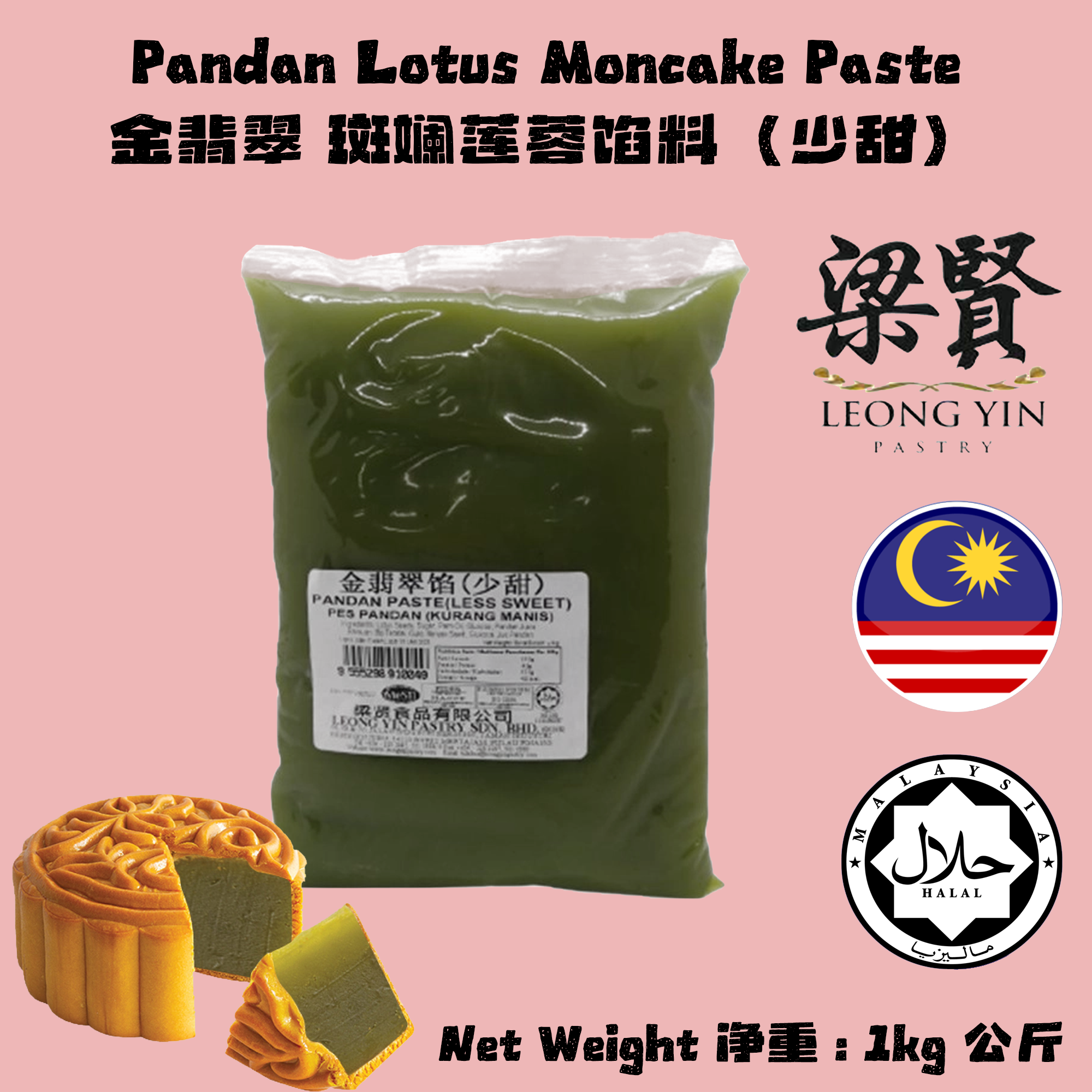 Product Name 产品名称 : Pandan Lotus (Less Sugar) 1KG 少甜翡翠莲蓉馅料
