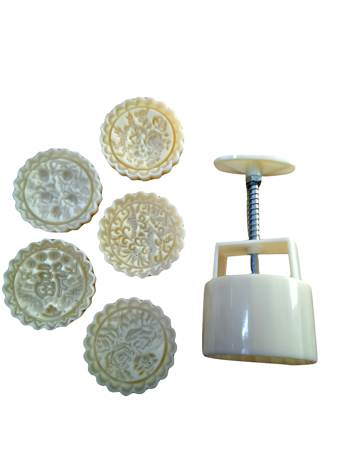 1pc * 125g Traditional Mooncake Plunger Press 125G传统手压模具 + 5pcs * Design ("Fu" word , Fish , Flower) 5片不同设计(“福”,鱼,花朵)