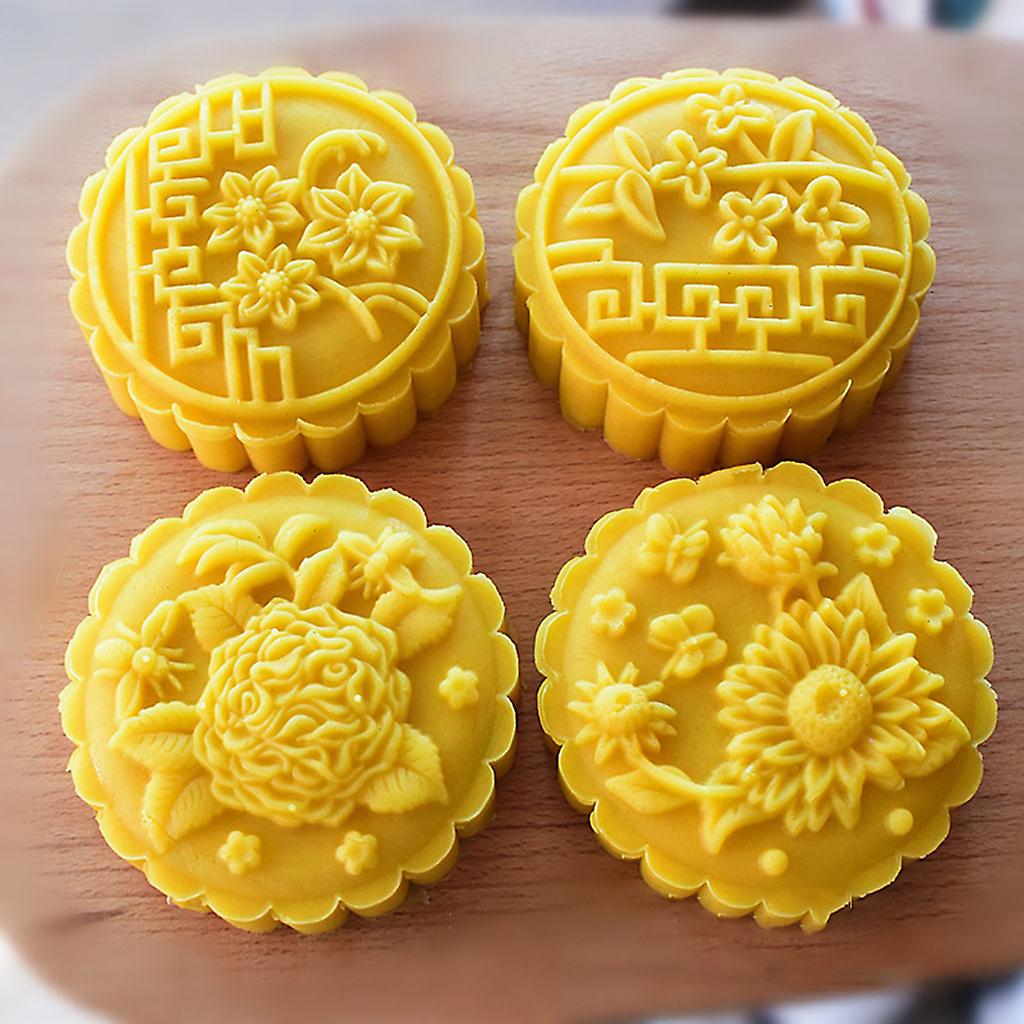 Product Name 产品名称 : 150G - 4pcs Elegant Flowers Mooncake Mould (MC704) 4片150克花朵传统月饼手压模具