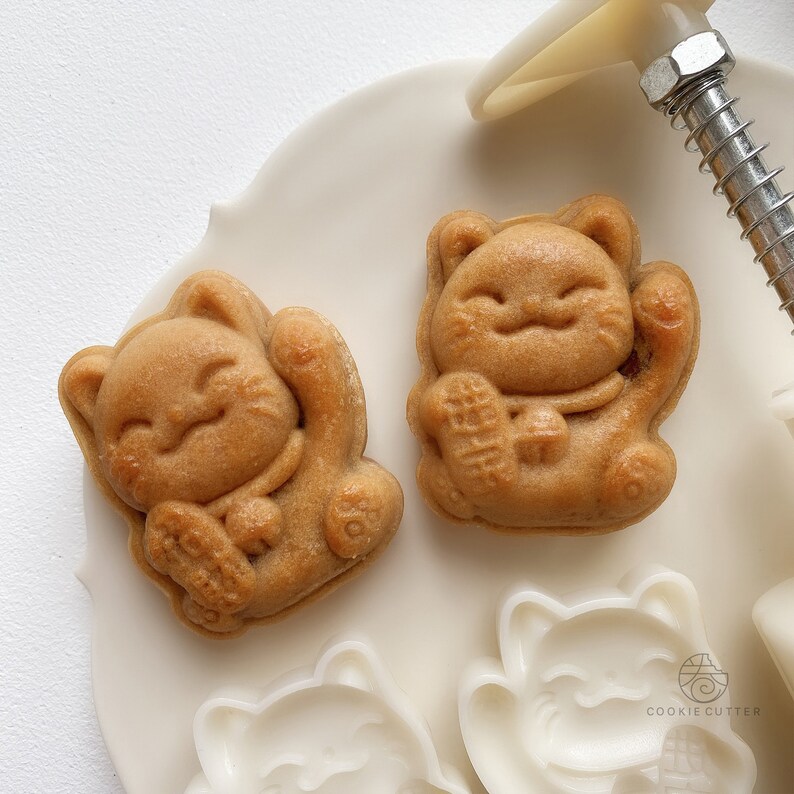 Product Name 产品名称 : 50G - 2pcs Fortune Cat Mooncake Mould (MC658) 2片50克招财猫传统月饼手压模具
