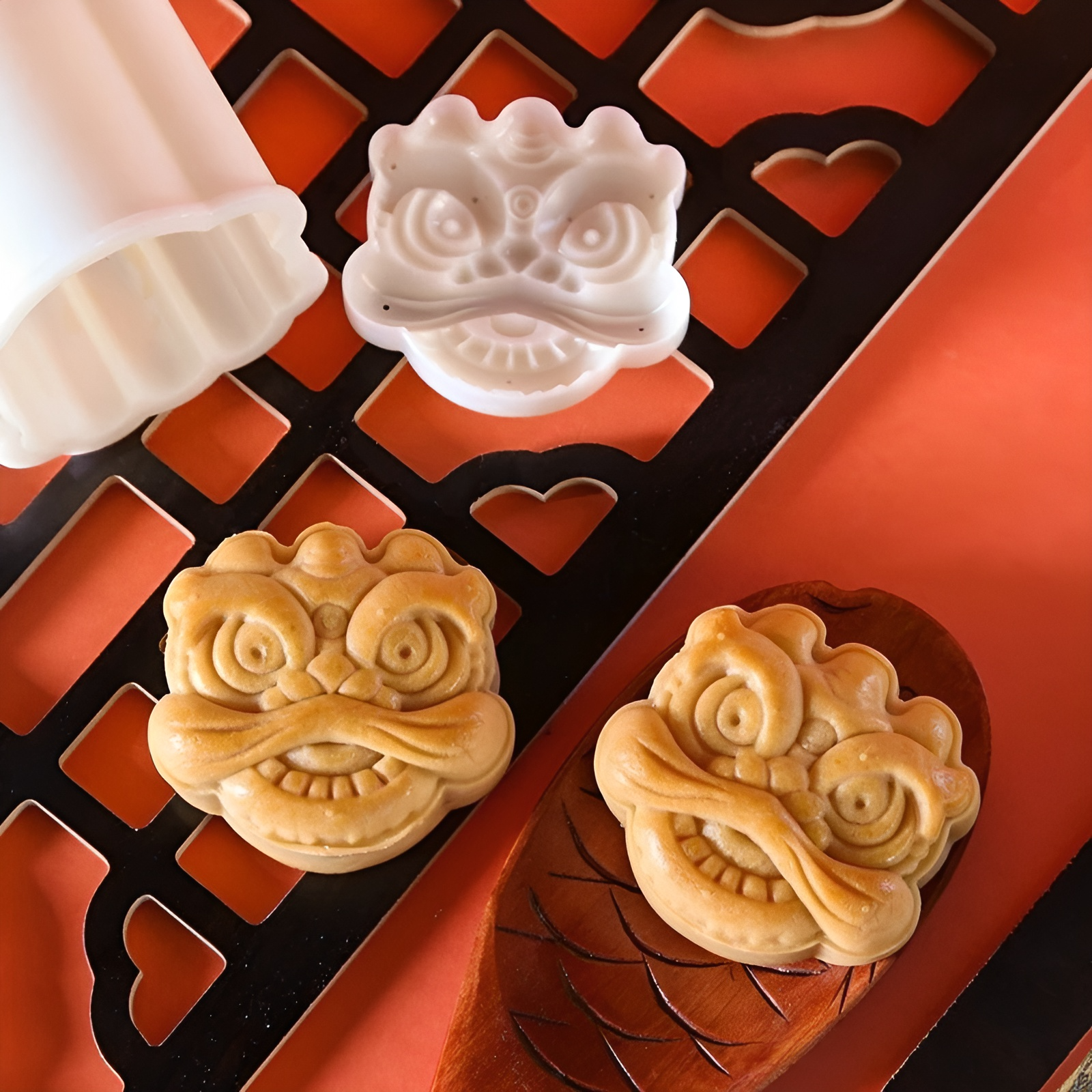 2pcs Lion Head Shape 醒狮模具 + 1pc Plunger Press Mould 手压模具