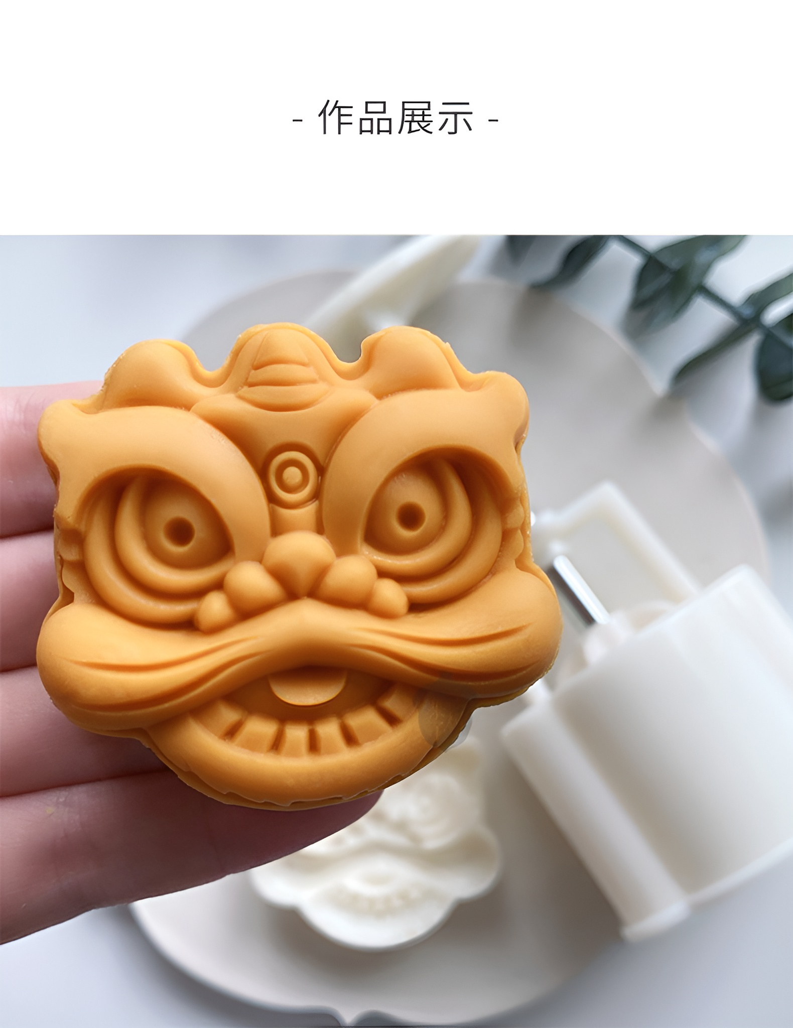 Product Name 产品名称 : 63G - 2pcs Lion Head Mooncake Mould 2片63克醒狮传统月饼手压模具