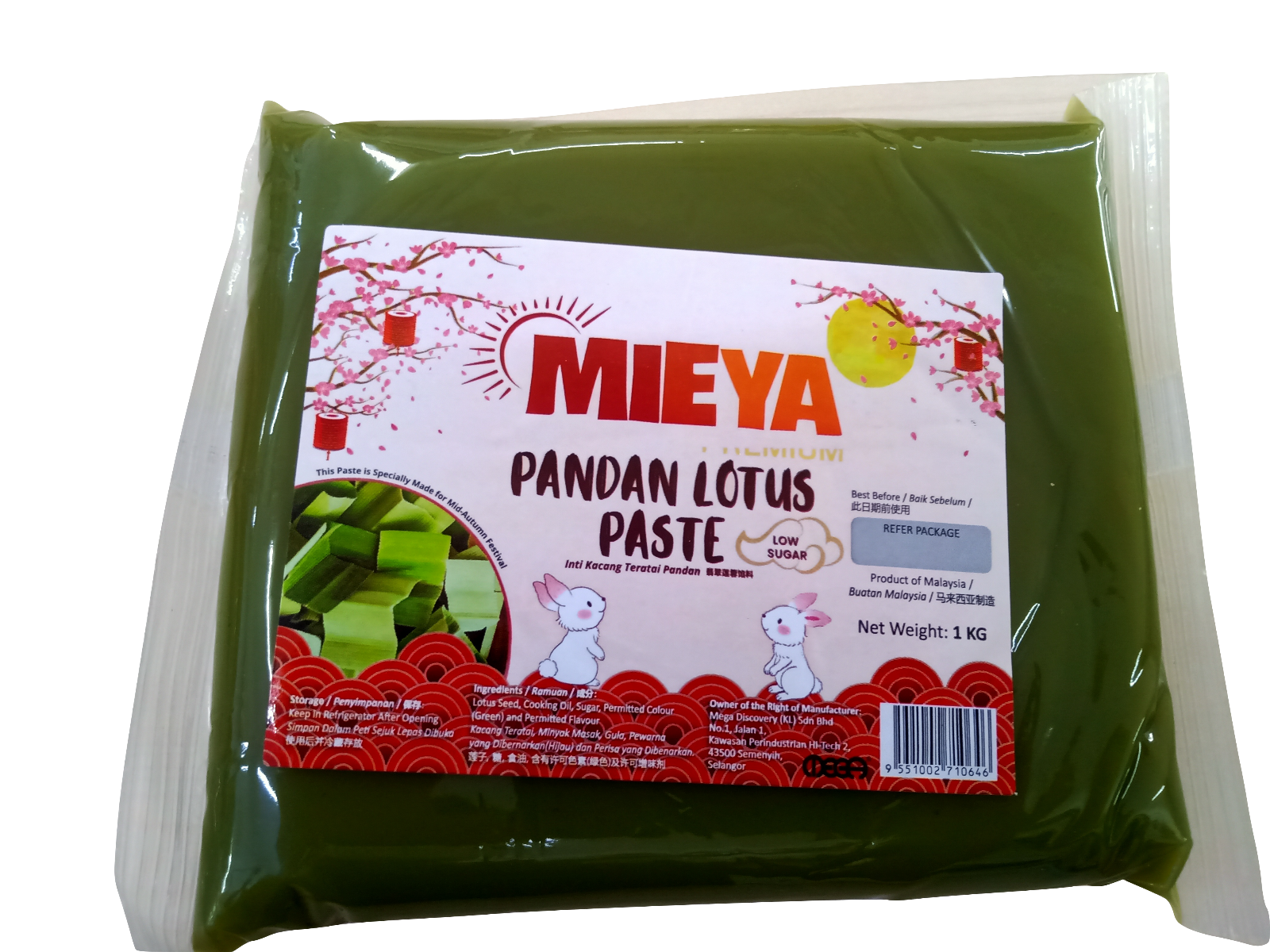 Product Name 产品名称 : MIEYA Pandan Lotus (Low Sugar) 1KG 低糖翡翠莲蓉馅料