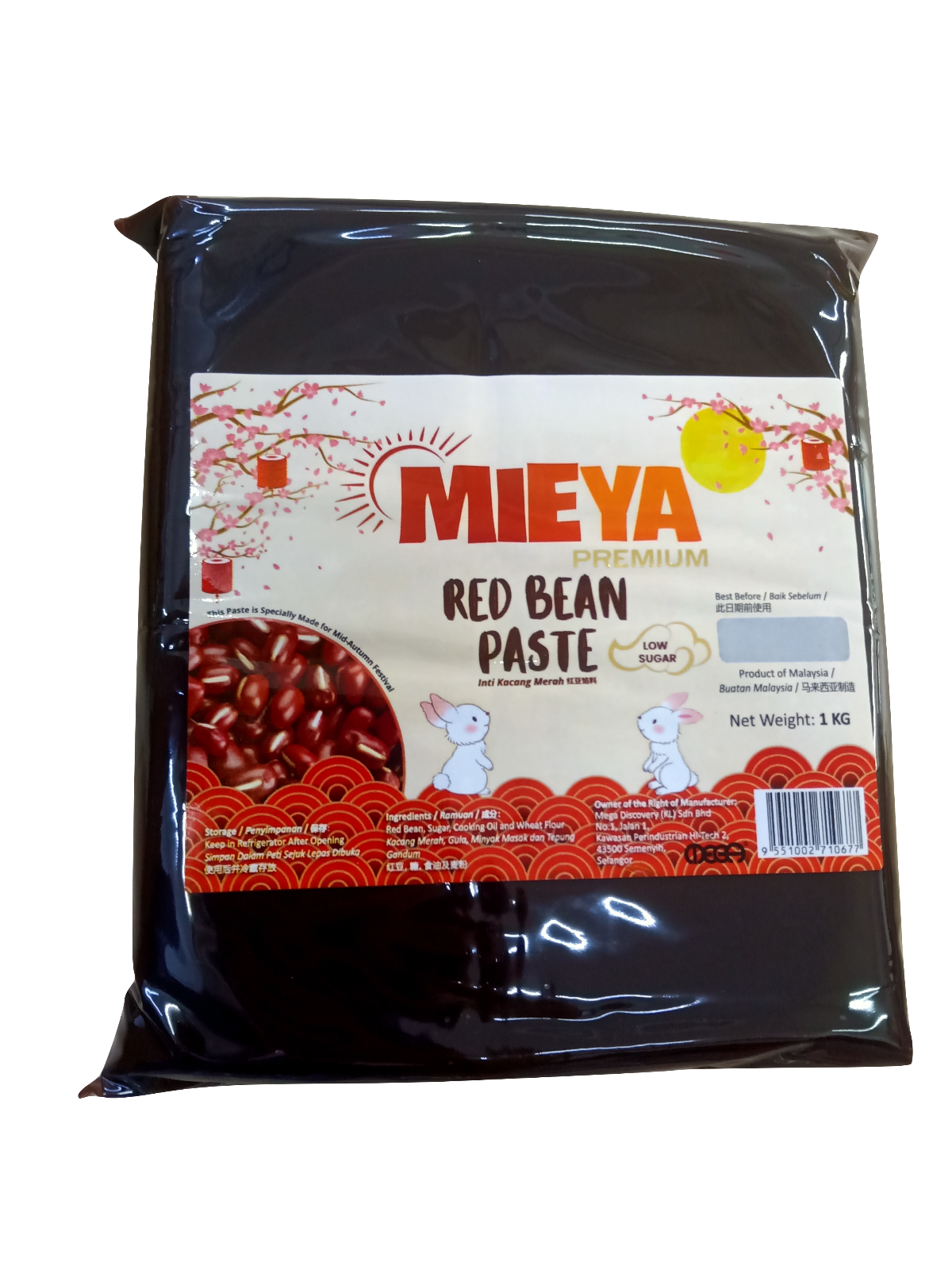 Product Name 产品名称 : MIEYA Pure Red Bean Paste (Low Sugar) 1KG 低糖红豆沙馅料