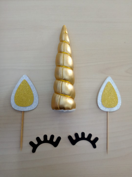 2pcs * Ears 耳朵 , 2pcs * Eyelash 眼睫毛 , 1pc * Unicorn Horn (Gold / Colorful) 独角兽犄角(金色/彩色)