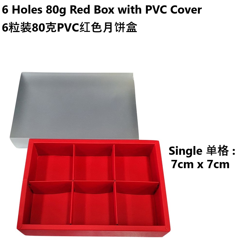 1pc * 6 holes 80g Red Box with PVC Cover 6粒装80克红色透明月饼礼盒