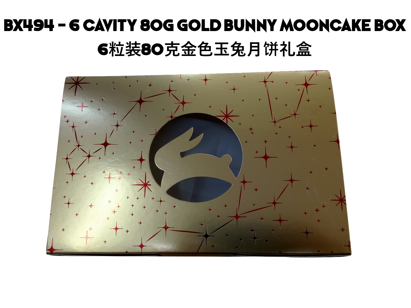 Product Name 产品名称 : 6pcs 80g Gold Bunny Mooncake Box - BX494 / 6粒装80克金色玉兔月饼礼盒