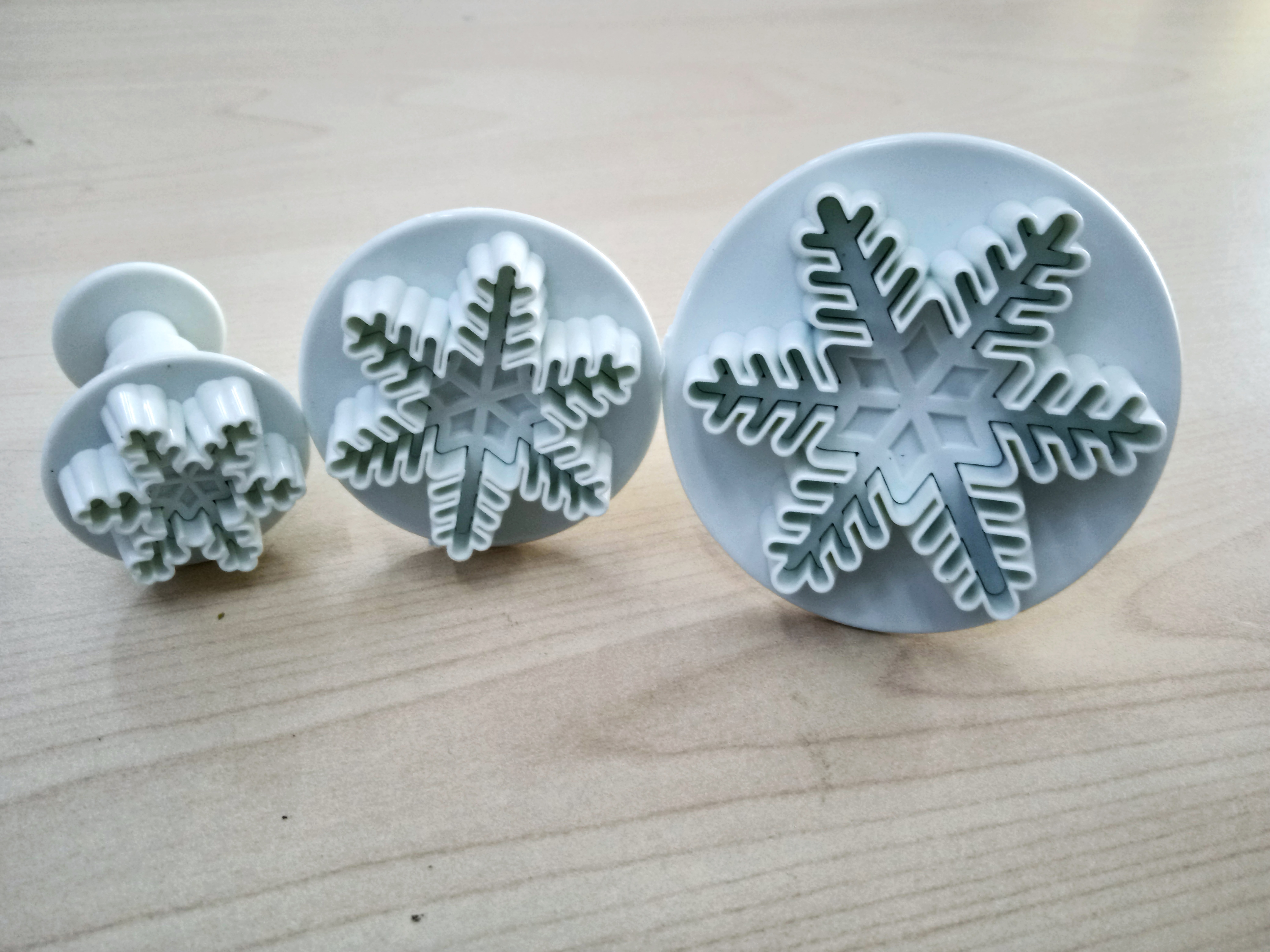 Product Name/产品名称 : 3pcs Plunger Fondant Cutter - Snowflakes 雪花形状翻糖手压模具