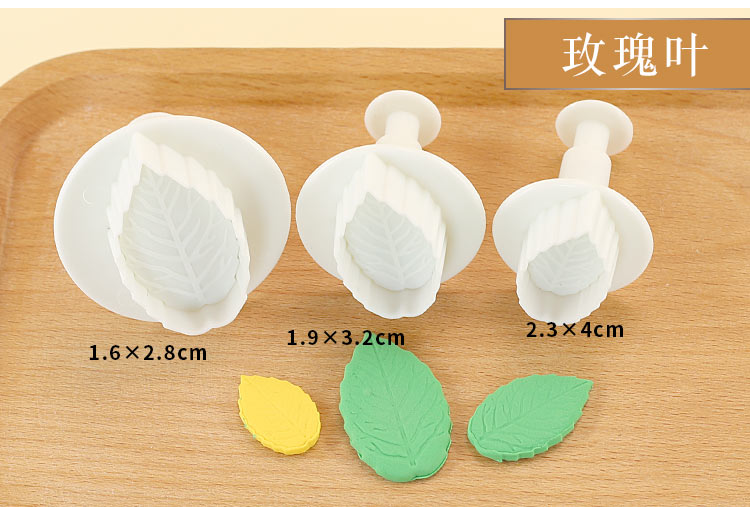 Product Name/产品名称 : 3pcs Plunger Fondant Cutter - Rose Leaf 3个玫瑰叶形状翻糖手压模具