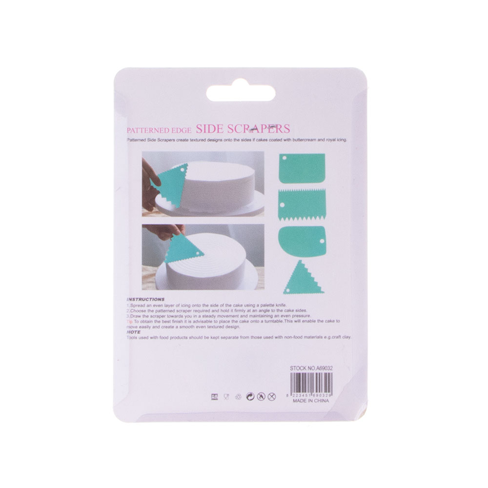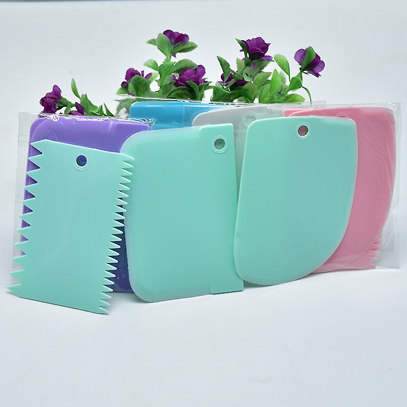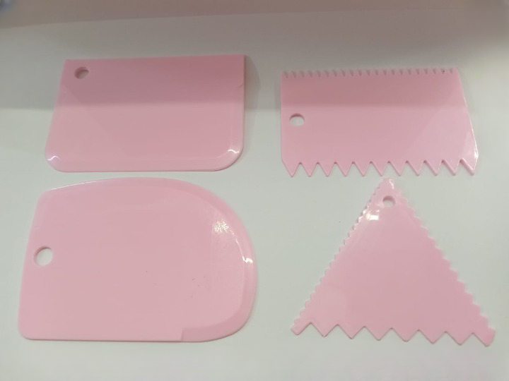 Product Name 产品名称 : 4pcs Plastic Scrapper Patterned Edge Side Scrappers Set 4片塑料蛋糕奶油造型刮板套装