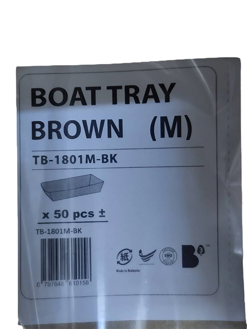Product Name 产品名称 : Disposable Brown Kraft Boat Paper Tray 一次性使用船型牛皮纸制托盘