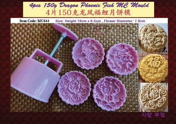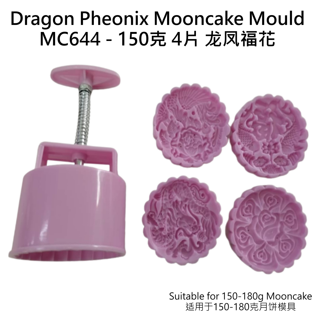 Product Name 产品名称 : 150G - 4pcs Dragon Pheonix Mooncake Mould (MC644) 150克4片龙凤福花传统月饼手压模具