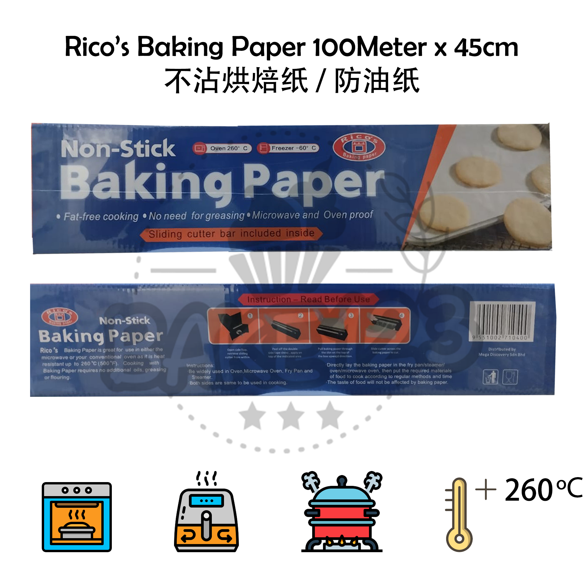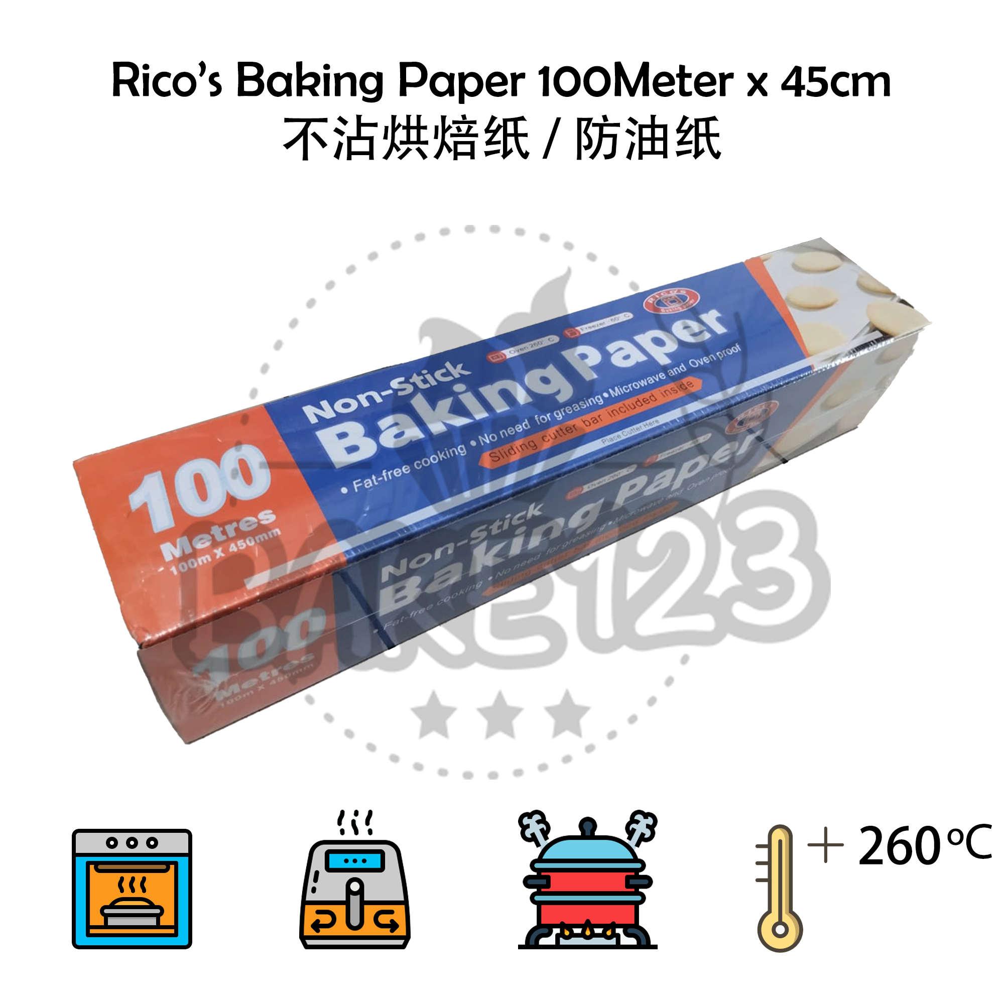 Product Name/产品名称 : Rico's Baking Paper 100m x 45cm 不沾烘焙纸