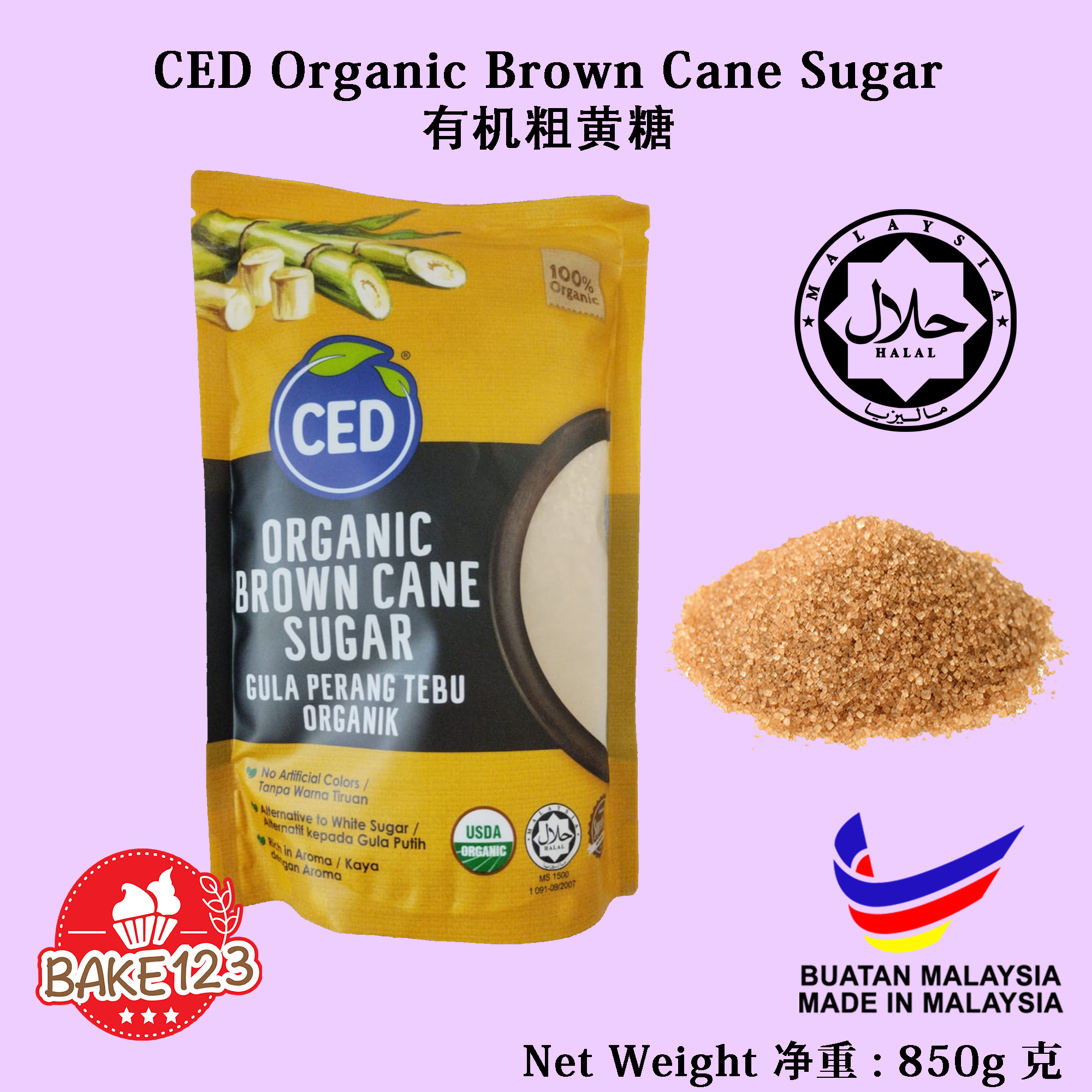 Product Name/产品名称 : CED Organic Brown Cane Sugar 有机粗黄糖