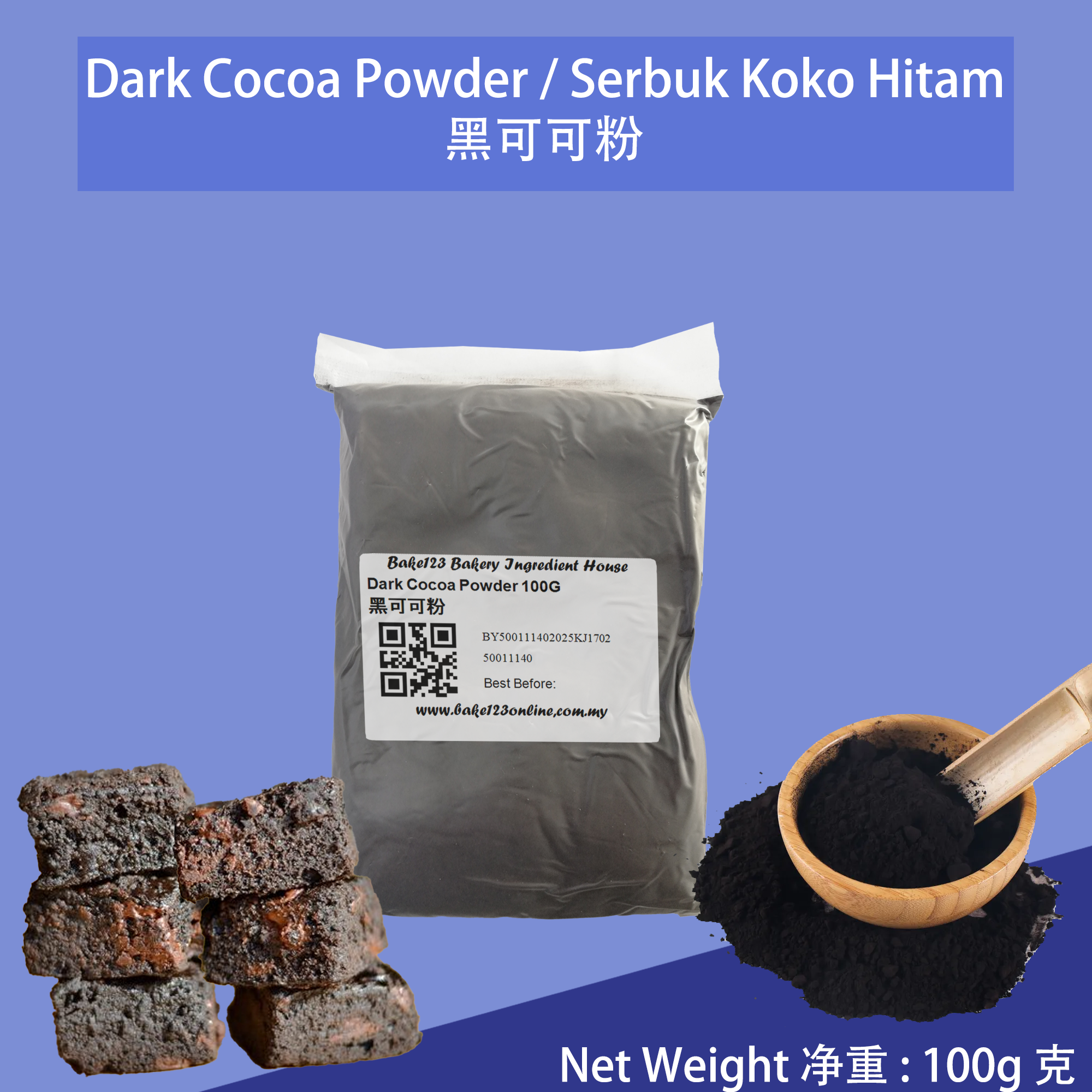 Pure Dark Cocoa Powder 100g / Black Cocoa Powder / Serbuk Koko Hitam 100g