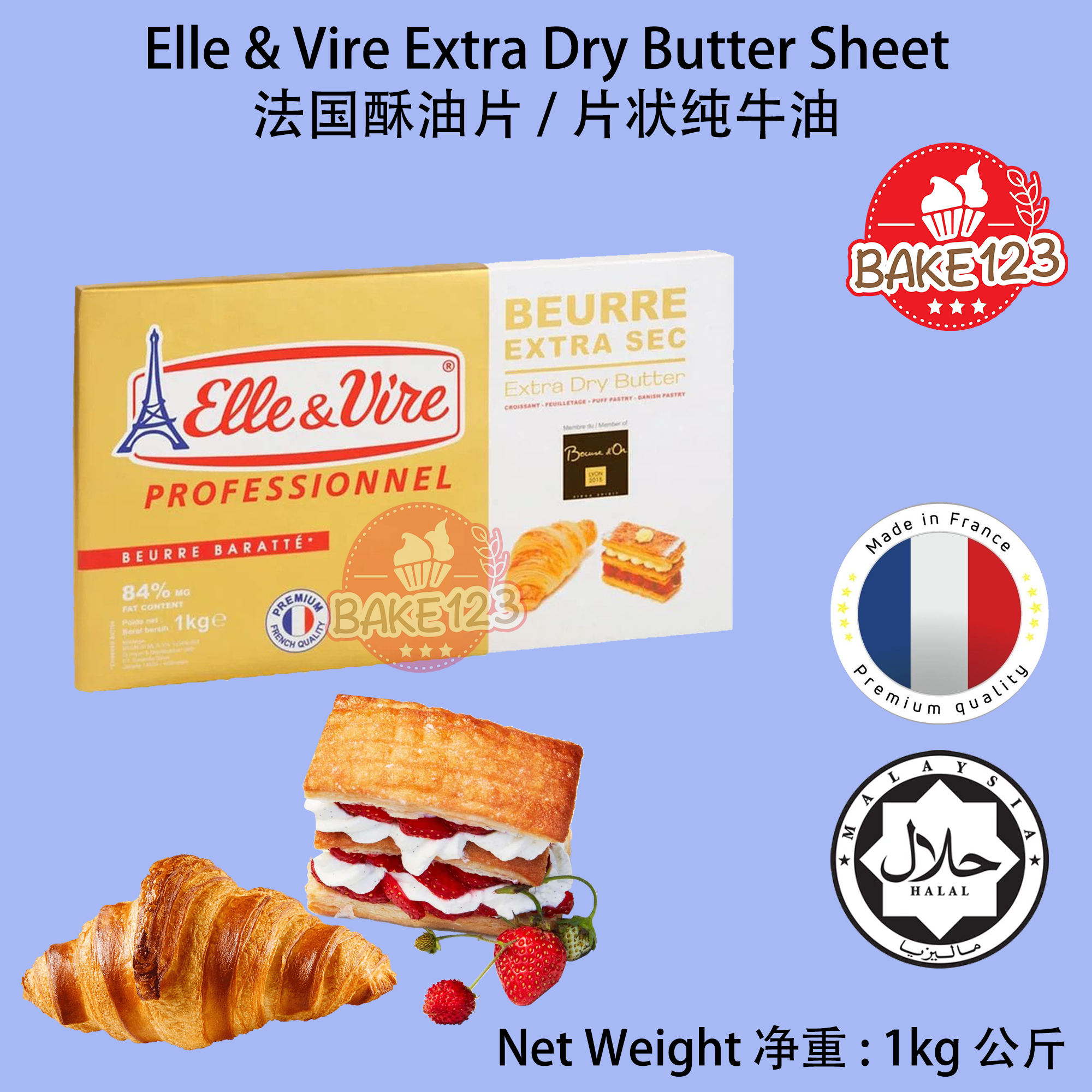 - Halal France 法国清真认证 : Halal France certification ensures that Elle Vire Butter is suitable for halal dietary requirements. Allowing customers to use it to create delicious pastries and baked goods. 经过法国清真认证,适合清真饮食。这客户可以信心满满地使用它,制作出美味的酥皮点心和面点。
