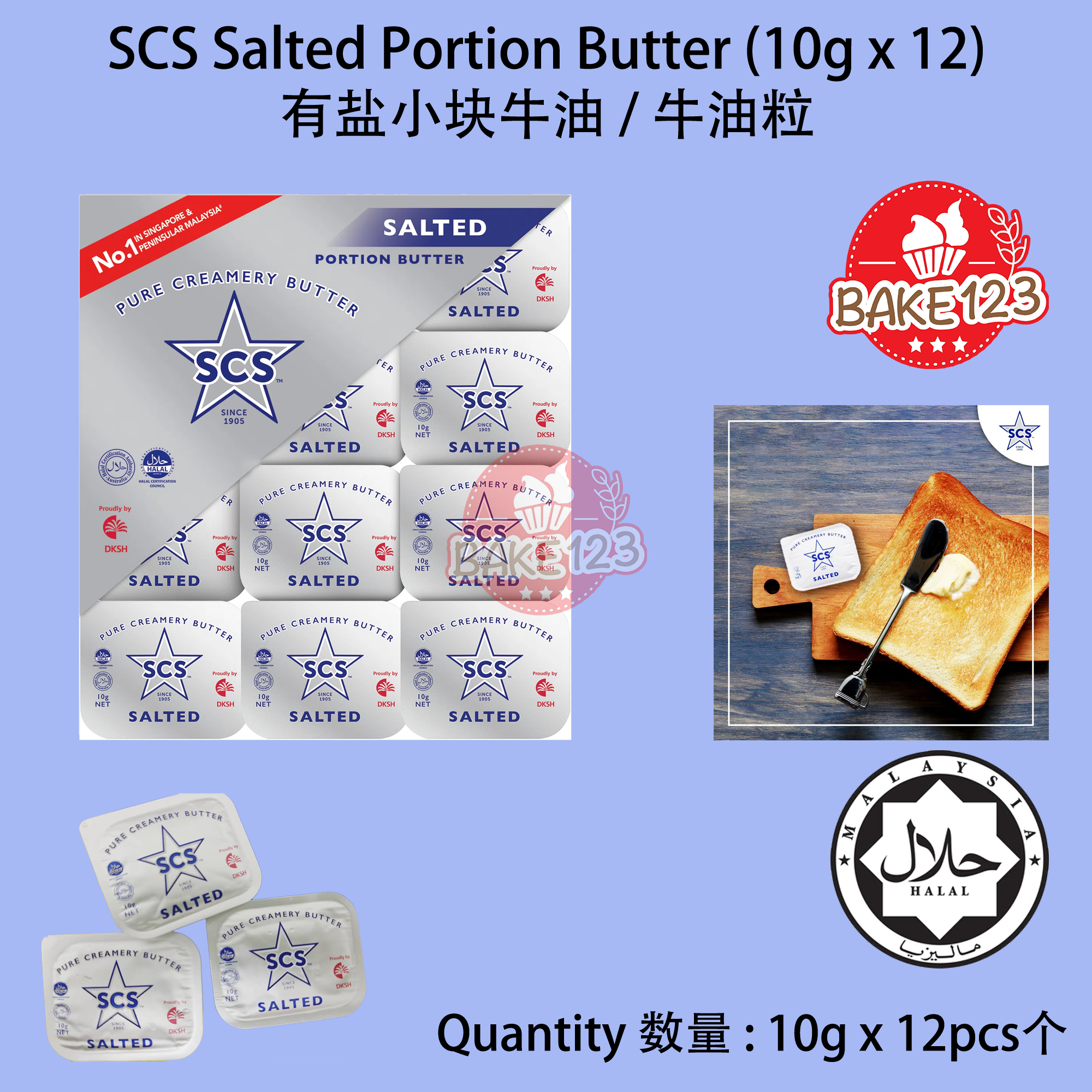 - Convenient Individual Portions 便捷的个体小包装: SCS Salted Portion Butter comes in convenient individual 10g portions, making it easy to control and use in your cooking or as a spread. SCS 盐味小包装黄油采用便捷的个体10克小包装,方便您在烹饪或涂抹时进行精确的控制和使用.