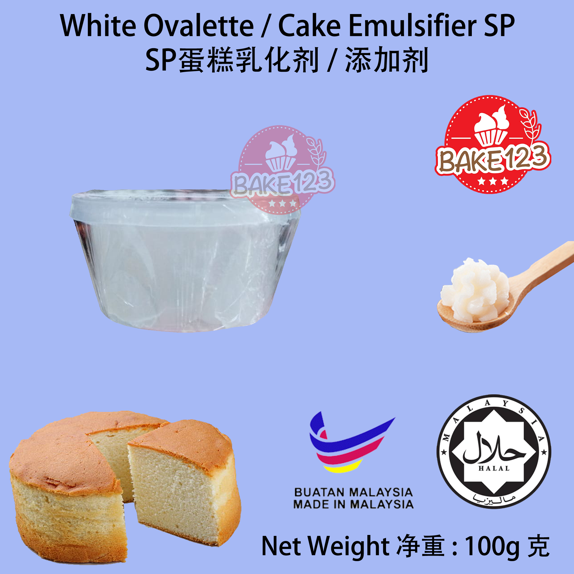 Product Name 产品名字: Emulsifier SP / White Ovalette Cake Stabilizer 1kg 乳化剂 / 蛋糕稳定剂 1公斤