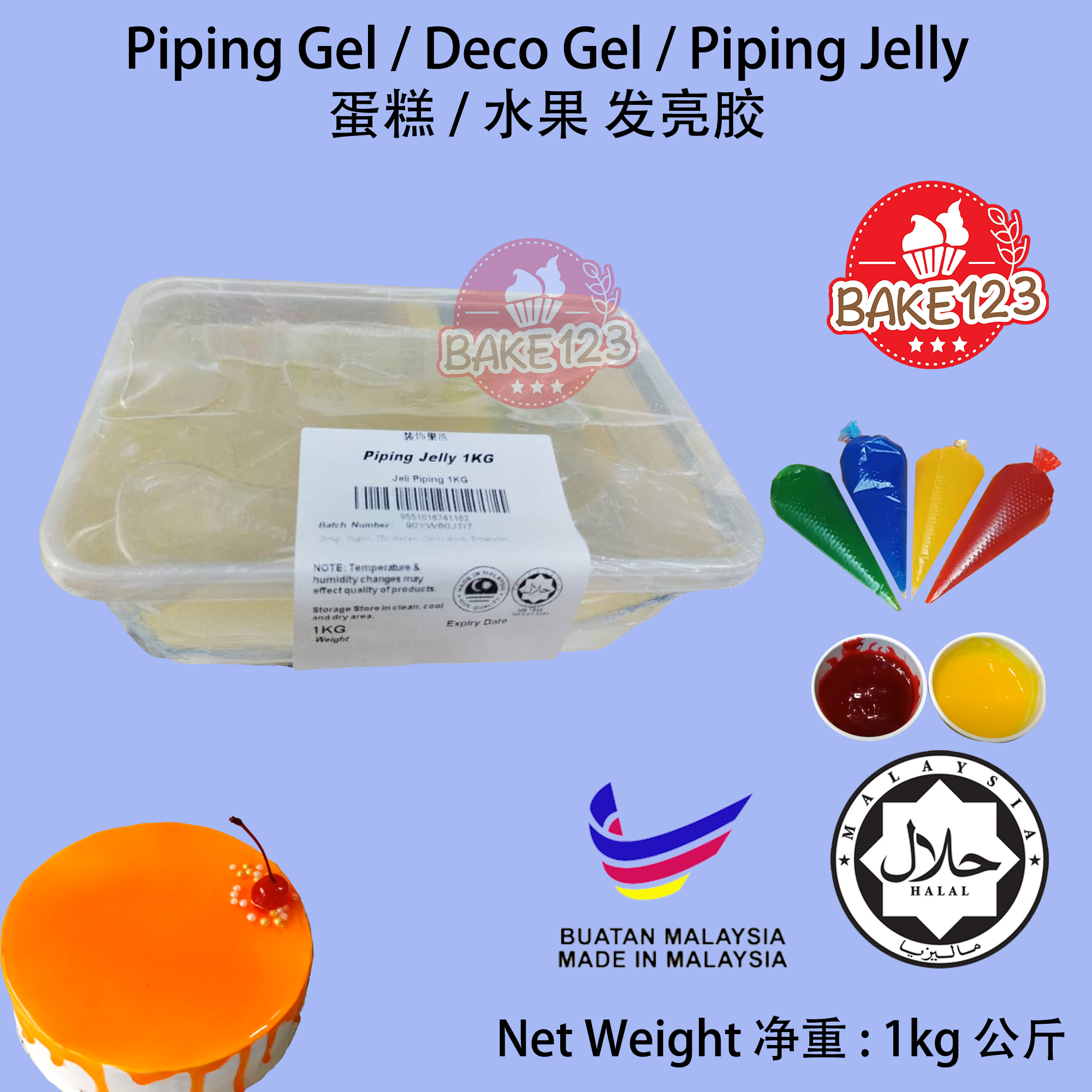 - Versatile Piping Gel 万能的装饰明胶: Piping Deco Gel by Bake123 is a versatile gel that can be used for both mirror glaze and fruit glazing. It adds a glossy finish to your desserts, making them visually appealing. Bake123 的 Piping Deco Gel 是一种多功能明胶,可用于镜面淋饰和果冻淋饰。它为您的甜点增添了光泽,使其在视觉上更吸引人。