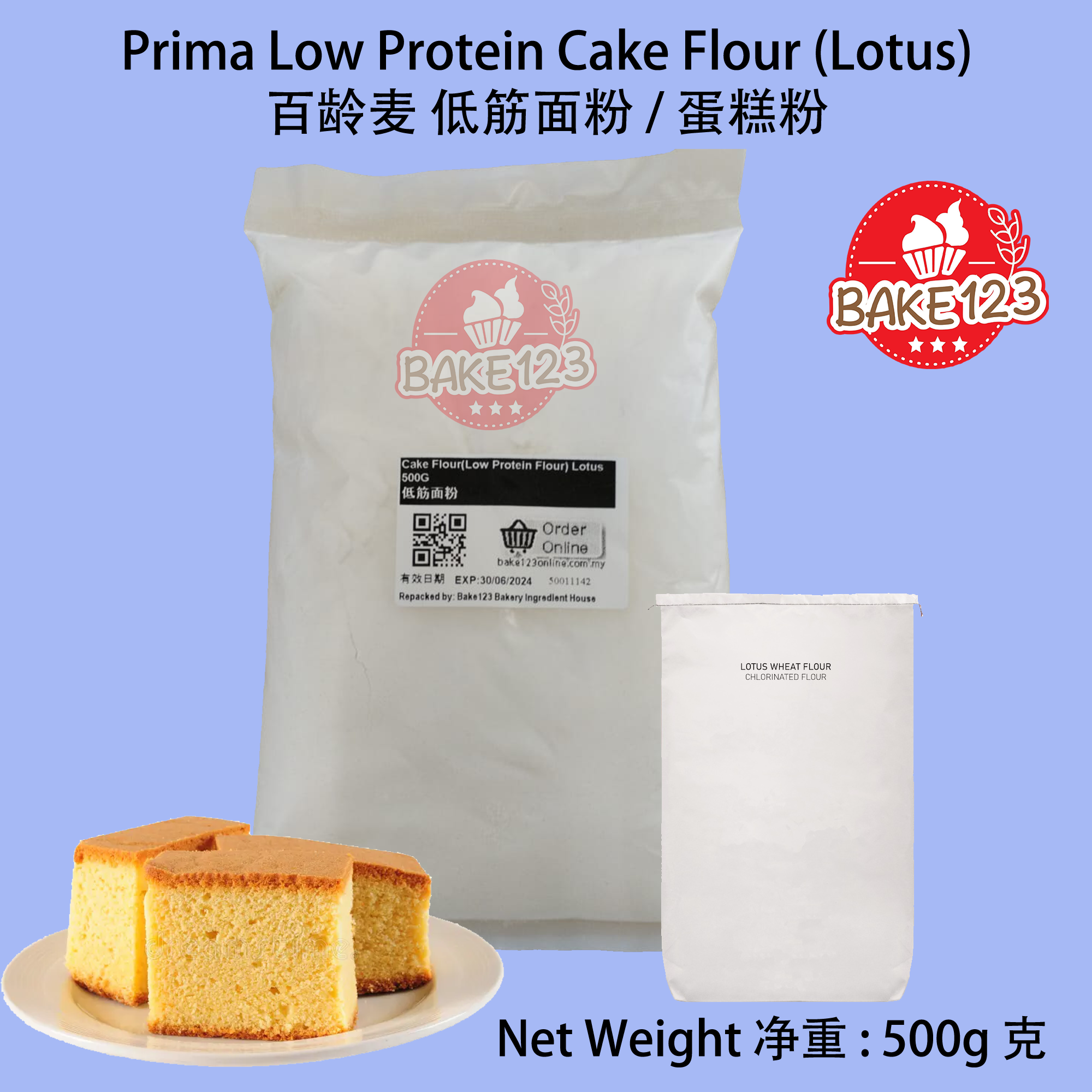 - Low Protein Cake Flour 低筋蛋糕面粉: Prima Low Protein Cake Flour is specially designed for making delicate, soft, and light cakes. It provides the ideal texture for your cake creations. 百龄麦低筋蛋糕面粉是专为制作精致、柔软和轻盈的蛋糕而设计的。它为您的蛋糕创作提供了理想的质地。