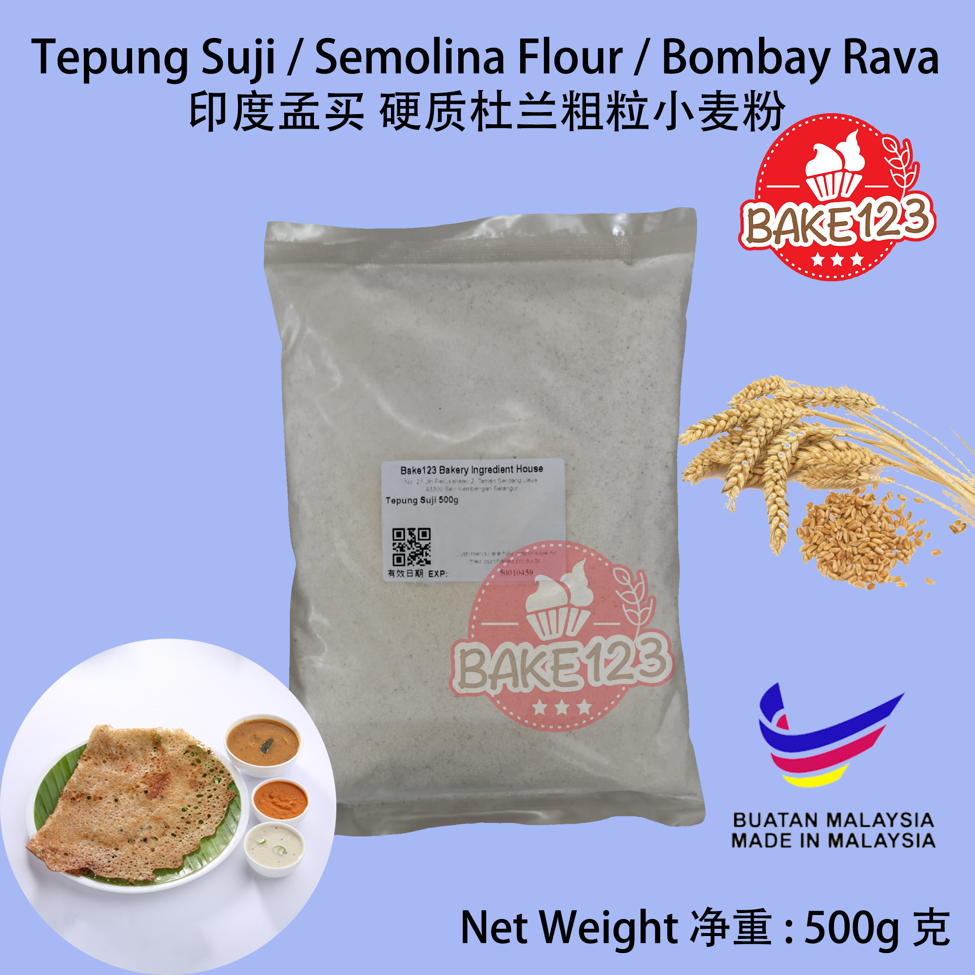 Product Name 产品名称 : Tepung Suji / Semolina Flour / Bombay Rava 粗粒小麦粉