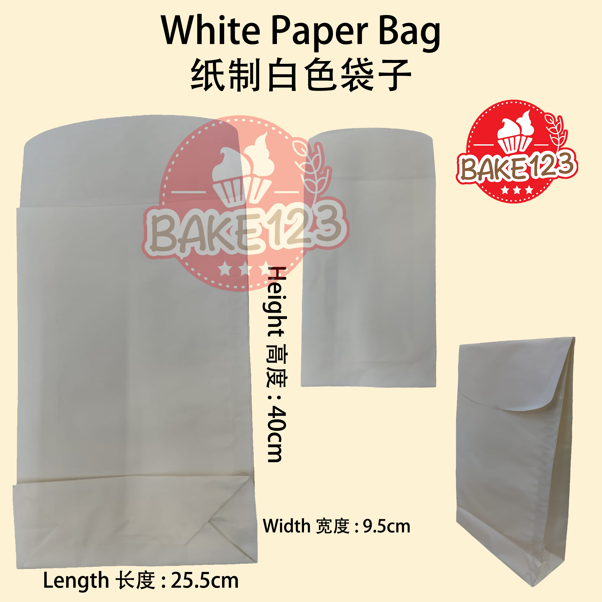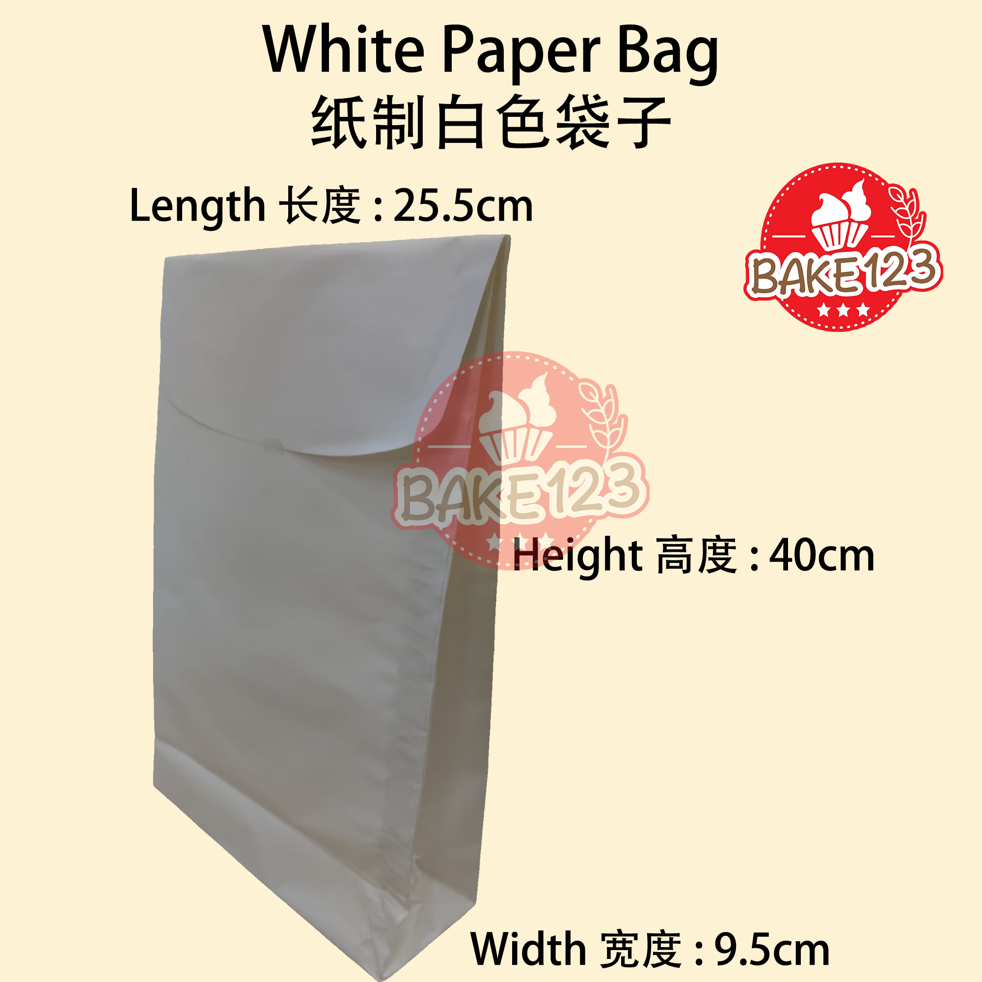- Versatile Usage 多用途 : The White Paper Bag is a versatile and practical choice for various purposes. Whether you're looking for an elegant gift bag or a convenient packaging solution for bread, this bag is designed to meet your needs. Its spacious dimensions (25.5 x 9.5 x 40cm) make it suitable for accommodating a variety of items. 白色纸袋是多功能且实用的选择,适用于各种用途。无论您是寻找优雅的礼品袋还是方便的包装解决方案,这个袋子都能满足您的需求。其宽敞的尺寸(25.5 x 9.5 x 40厘米)使其适用于容纳各种物品。