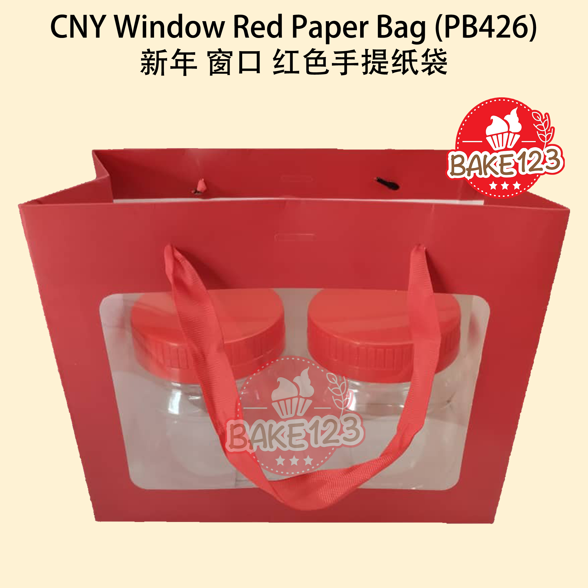 - Suitable Size for PET Containers 适用于PET容器 : This paper bag is specifically designed to accommodate 2pcs of CNY Cookies PET Containers with a base diameter of 12cm or below and a height not exceeding 20cm. It ensures a snug fit for your festive treats. 这款纸袋专门设计可容纳2个中国新年饼干PET容器,底部直径为12厘米或以下,高度不超过20厘米。确保您的节庆美食紧密包装。