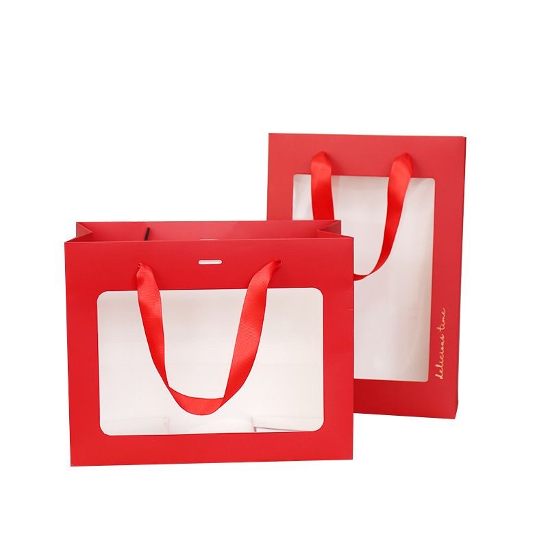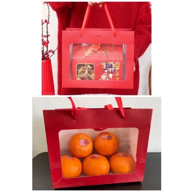 - Festive Design 节日设计 : The CNY Window Handle Red Paper Bag features a beautiful and festive design with a simple plain red exterior. The addition of a window on the side adds a touch of elegance and allows a sneak peek of the delightful treats inside. It's an excellent choice for packaging gifts during the Chinese New Year celebration. 新年窗户手提红纸袋采用美丽而节庆的设计,外观简单纯红。侧面的窗户设计增添了一丝优雅感,同时也让人能够一睹内部美味的小吃。这是在新年庆祝期间包装礼物的绝佳选择。