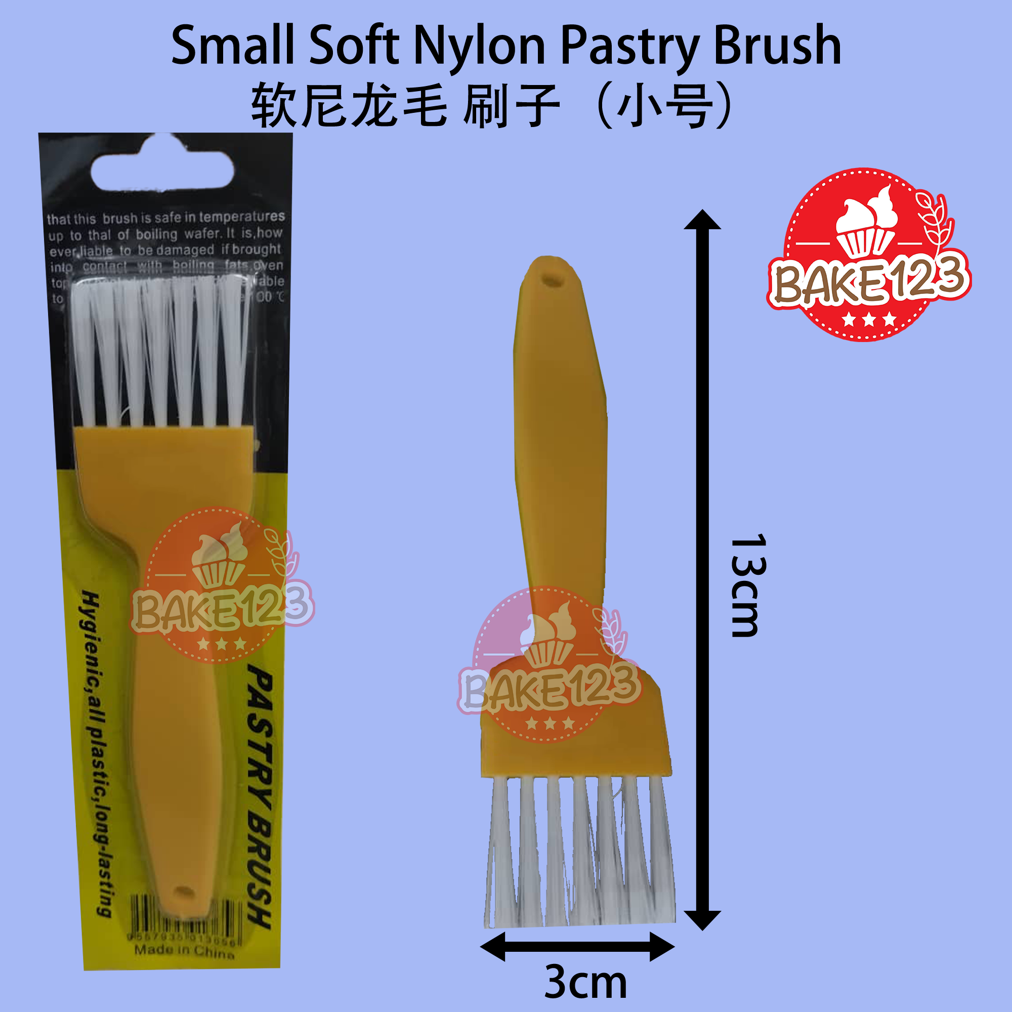 Product Name 产品名称: Soft Nylon Pastry Brush (GD694) 软尼龙毛 刷子 Dimension 尺寸 : 13cm x 3cm