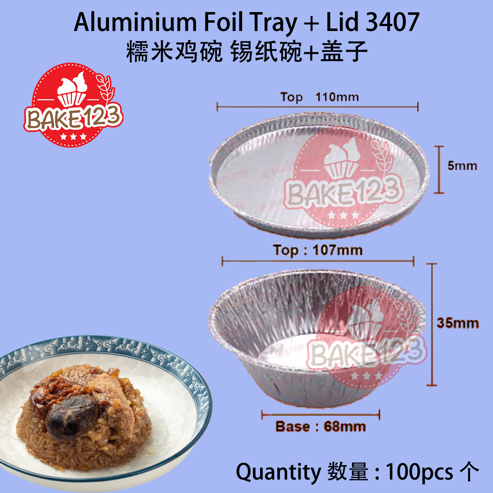 Product Name 产品名称 : Aluminium Foil Tray with Lid for Chicken Glutinous Rice 锡纸模具 碗和盖 (糯米鸡) Code 代号: 3407