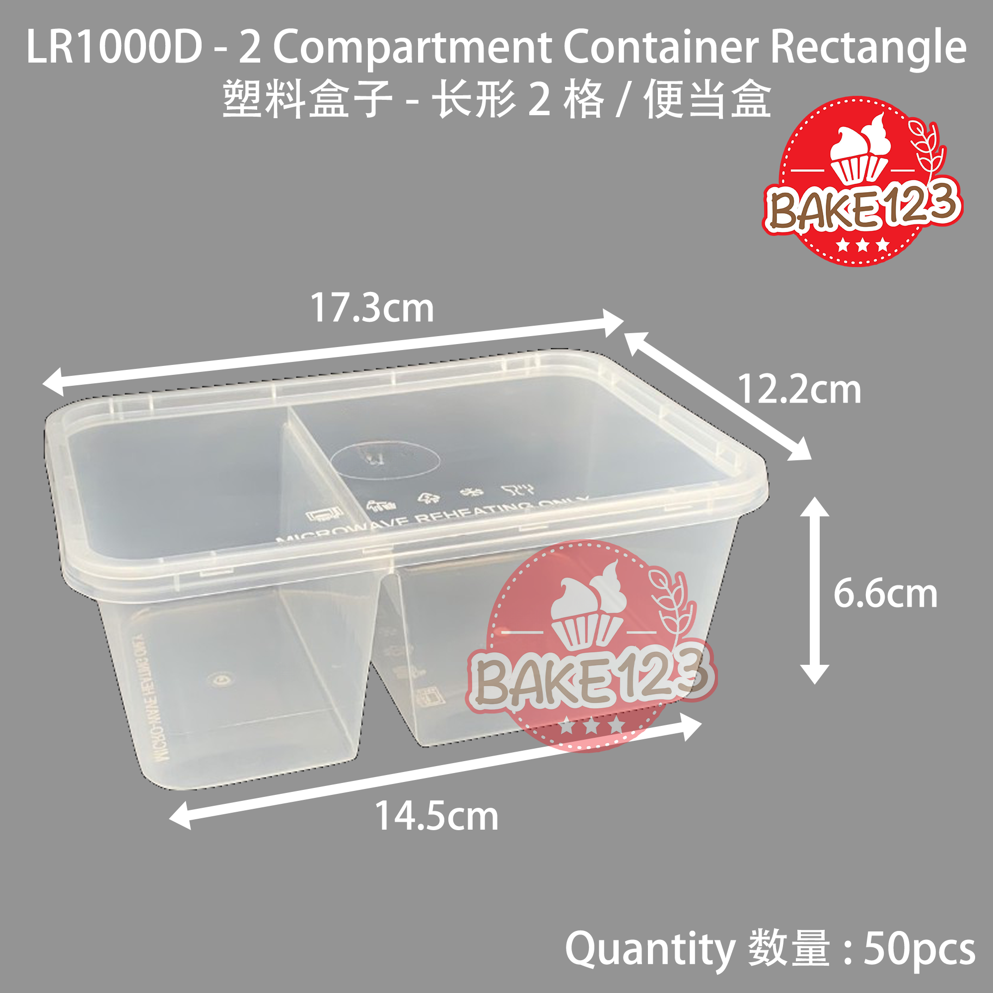 Product Name/产品名称 : Rectangular 2 Compartments Container 10pcs (LR1000D) 便当盒 - 长形2格饭盒