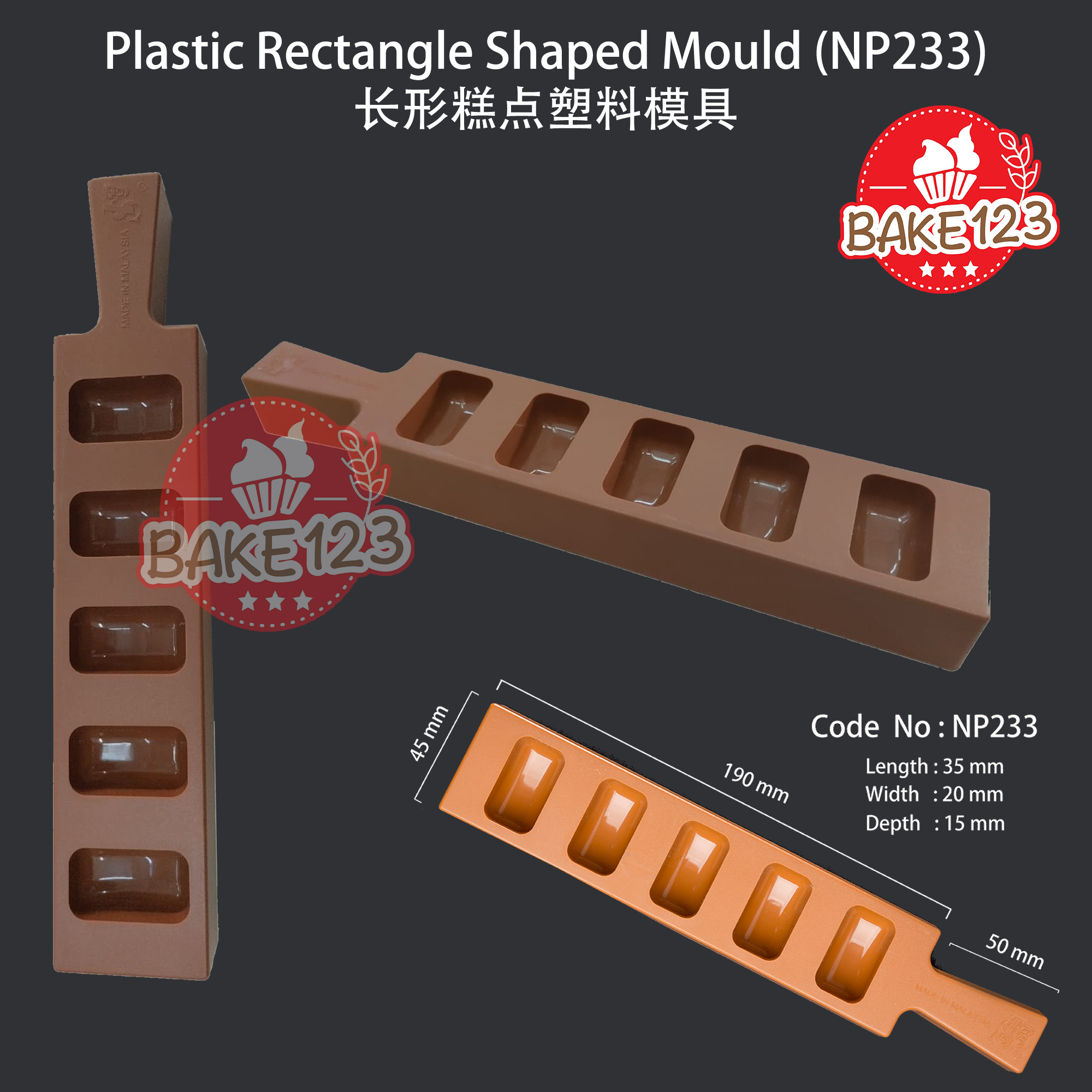 Product Name 产品名称 : Plastic Rectangular Shaped Mould / 塑料矩形烘焙模具 - NP233