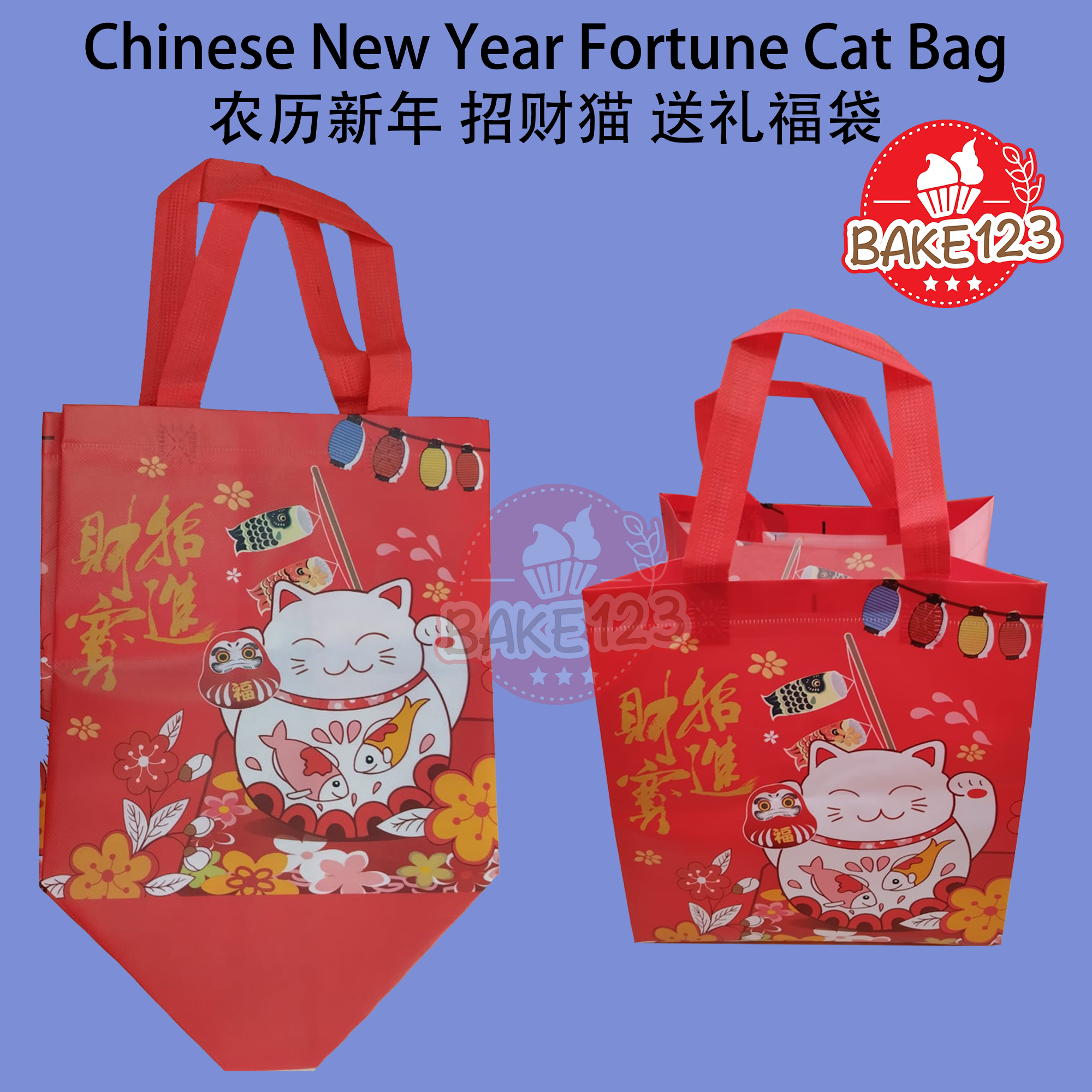 Product Name 产品名称 : CNY Gift Bag - Extra Big Fortune Cat Handle Bag 新年招财猫手提袋