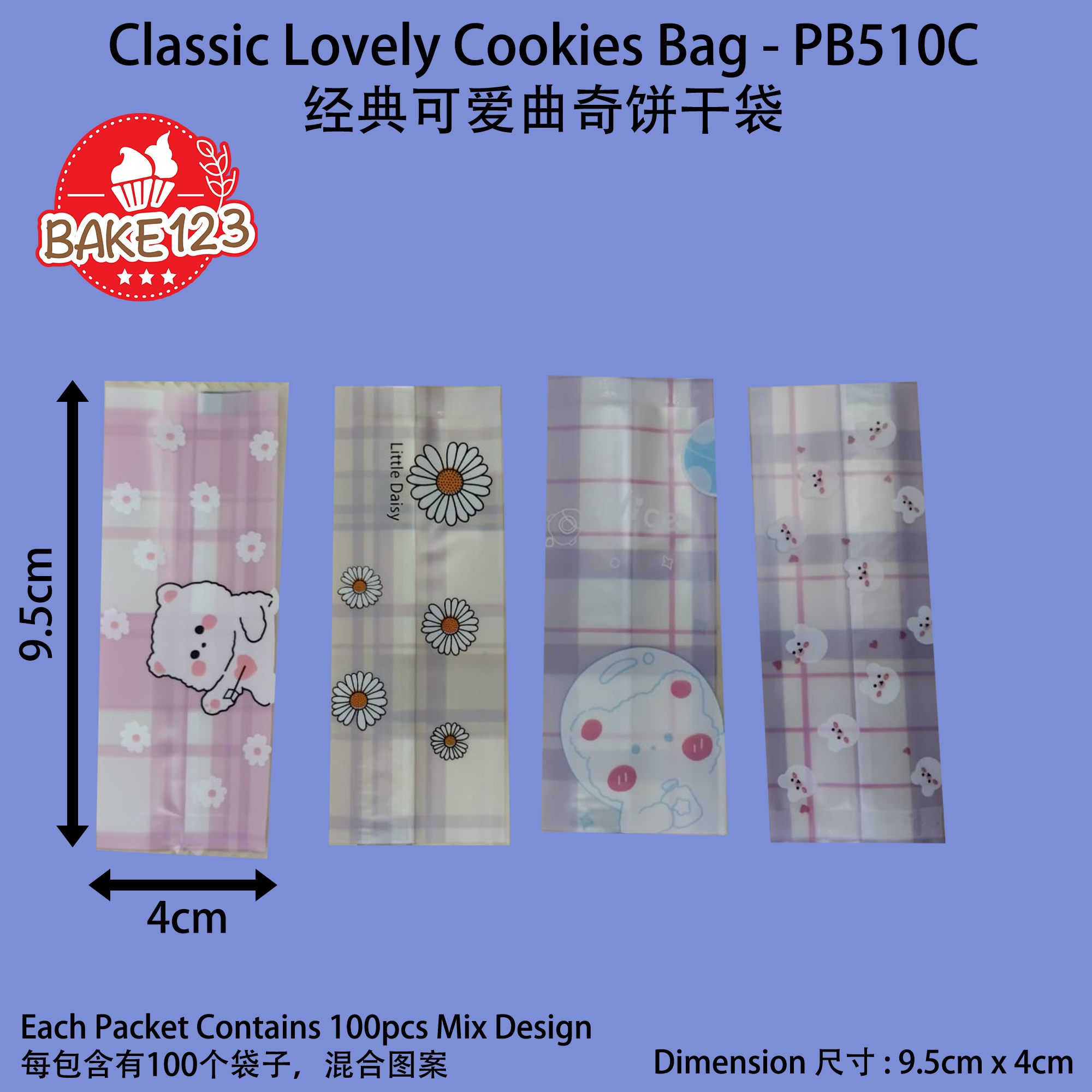 100pcs * Classic Lovely Nougat Candy Cookies Bag (PB510C) 经典可爱 牛轧糖/雪花酥/凤梨酥 曲奇饼干糖果袋