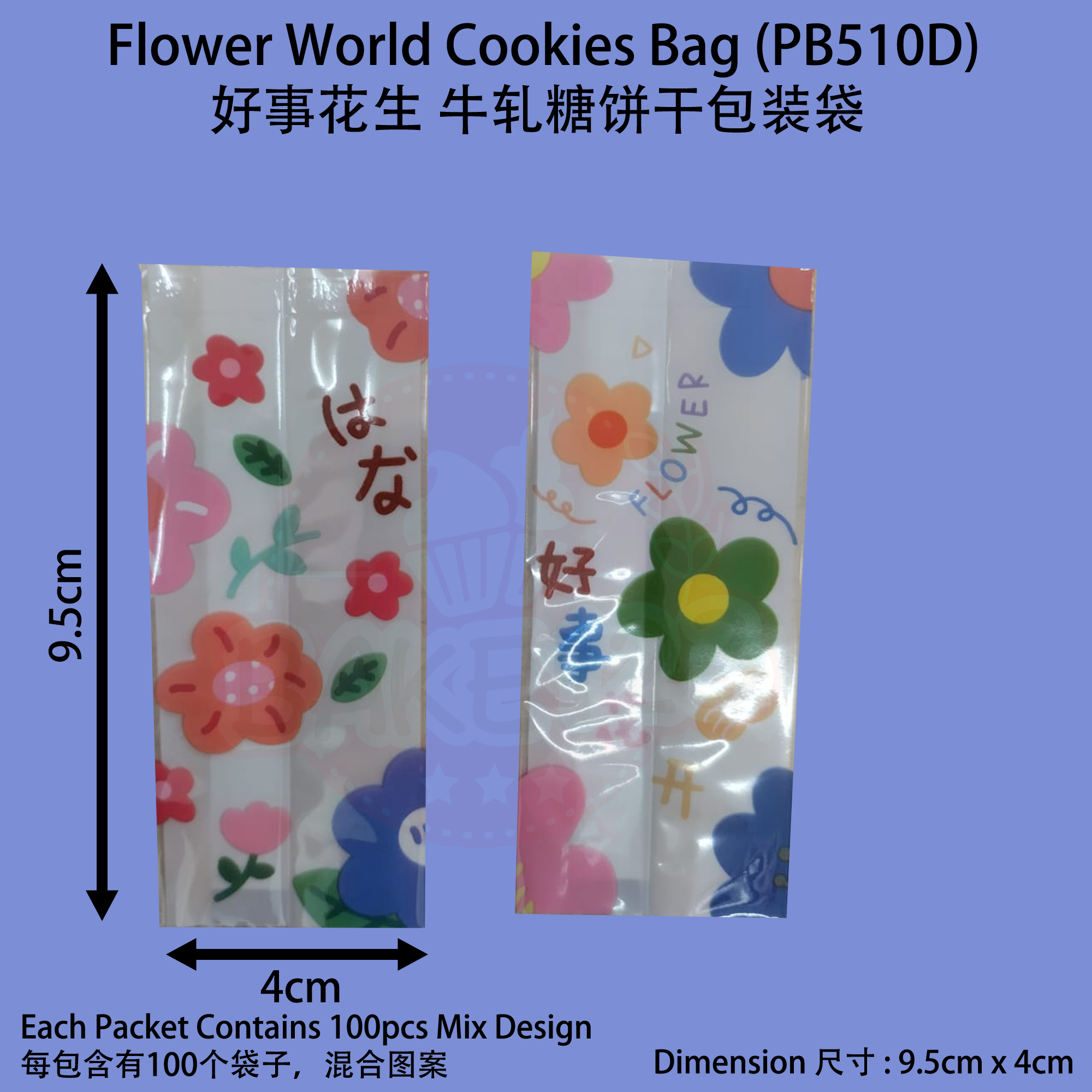100pcs * Flower World Nougat Candy Cookies Bag (PB510D) 花花世界 牛轧糖/雪花酥/凤梨酥 曲奇饼干糖果袋