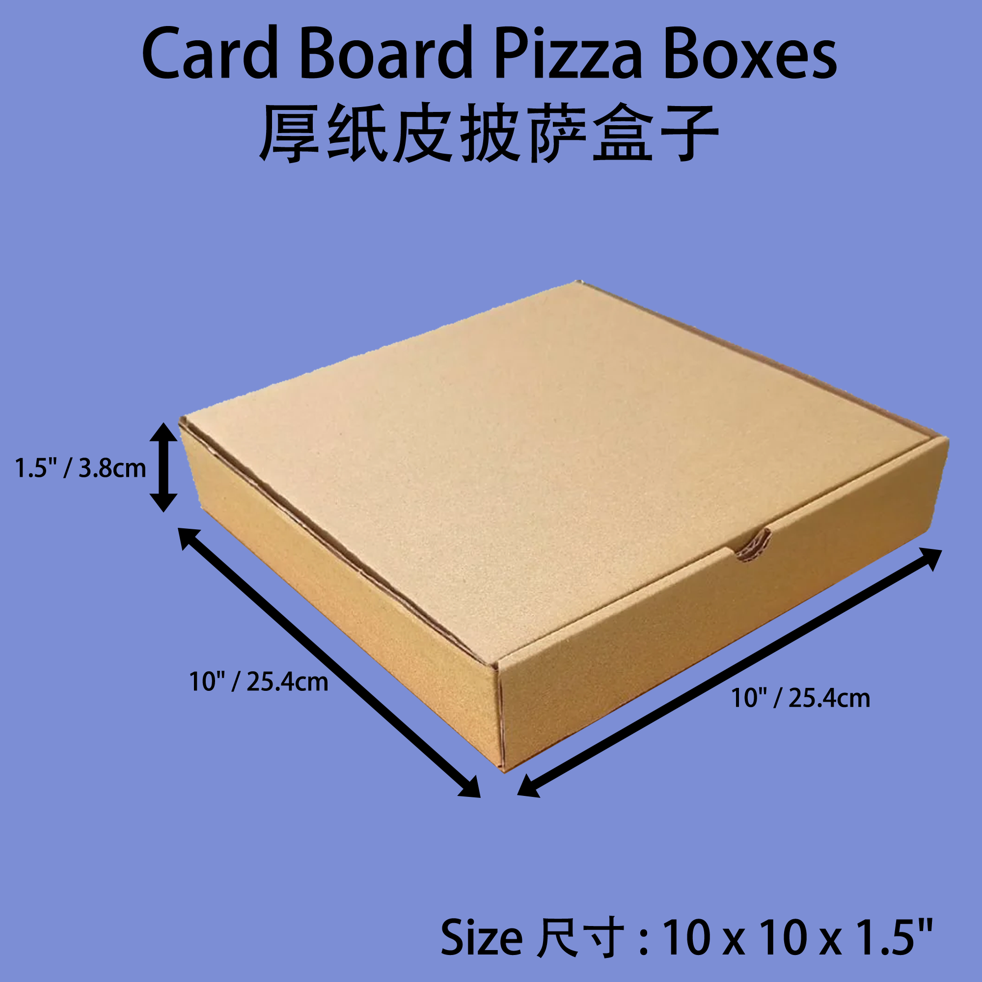 Features 特点: - Durable Cardboard Construction 耐用的纸板结构: This pizza box is crafted from sturdy and durable cardboard material, ensuring that your pizzas remain intact and secure during transport. 采用坚固耐用的纸皮材料制成,确保您的披萨在运输过程中保持完好无损。 - Standard Size 标准尺寸: With dimensions of 10 inches by 10 inches by 1.5 inches, this pizza box is suitable for holding most standard-sized pizzas, providing ample space for your delicious creations. 尺寸为10英寸×10英寸×1.5英寸,适用于大多数标准尺寸的披萨,为您美味的创作提供充足的空间。 - Foldable Design 折叠设计: The pizza box features a foldable design for easy assembly and storage. Simply fold along the creases to assemble the box quickly and efficiently. 披萨盒采用折叠设计,便于组装和存储。只需沿着折痕折叠,即可快速高效地组装盒子。 - Secure Closure 安全关闭: Equipped with flaps and tabs, this pizza box ensures a secure closure to keep your pizzas hot and fresh until they reach their destination. The tabs provide added stability during transportation. 配有盖翼和标签,确保安全关闭,让您的披萨在送达目的地之前保持热气腾腾、新鲜美味。标签在运输过程中提供额外的稳定性。