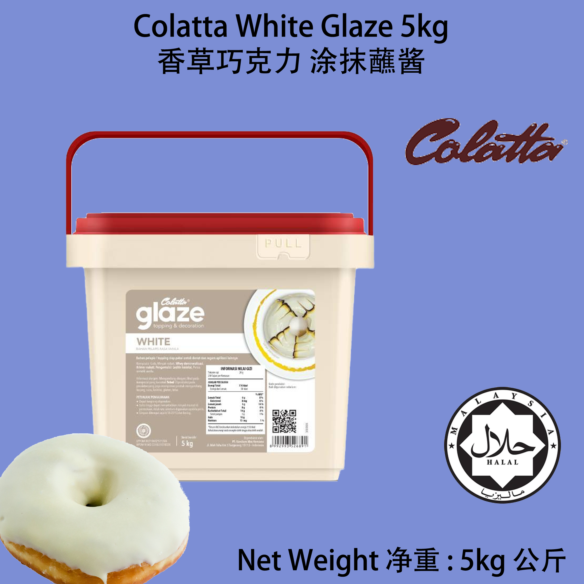 Product Name 产品名字: Colatta White Topping Vanilla Glaze 5kg 香草口味白色甜甜圈淋面/涂抹酱