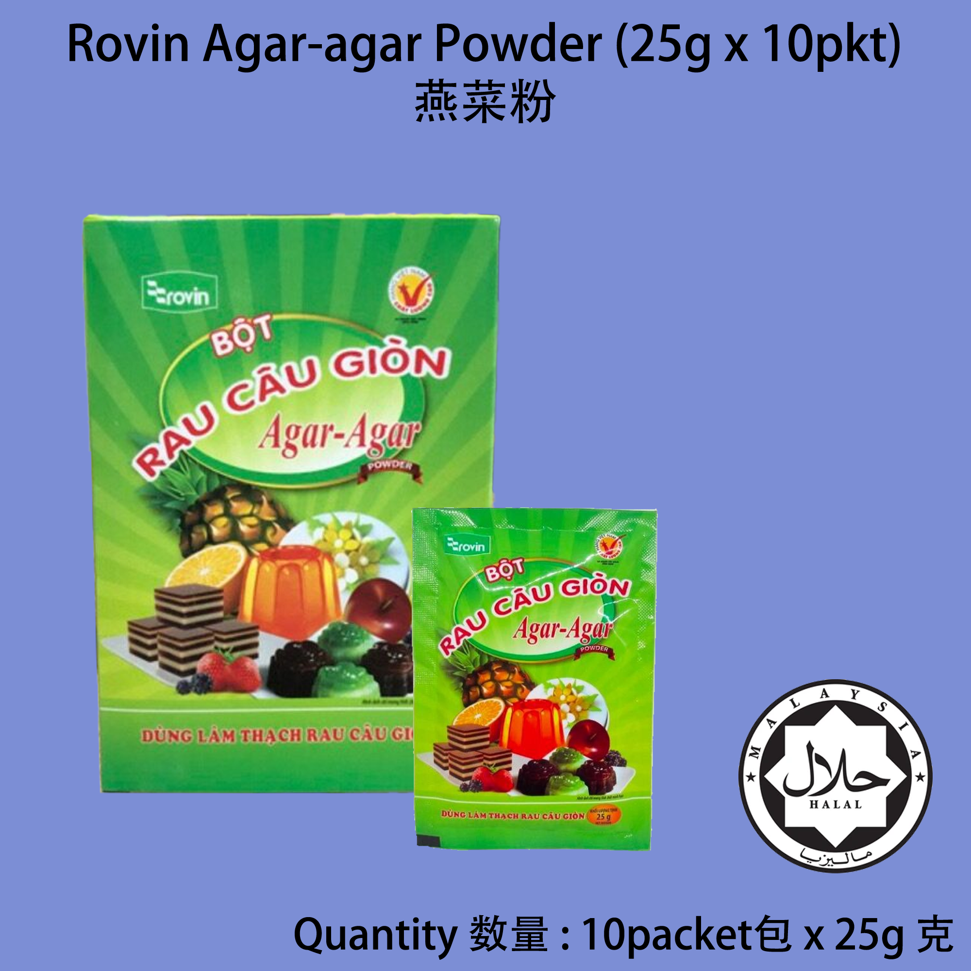 Product Name 产品名称 : Rovin Agar-Agar Powder 燕菜粉 / 琼脂粉