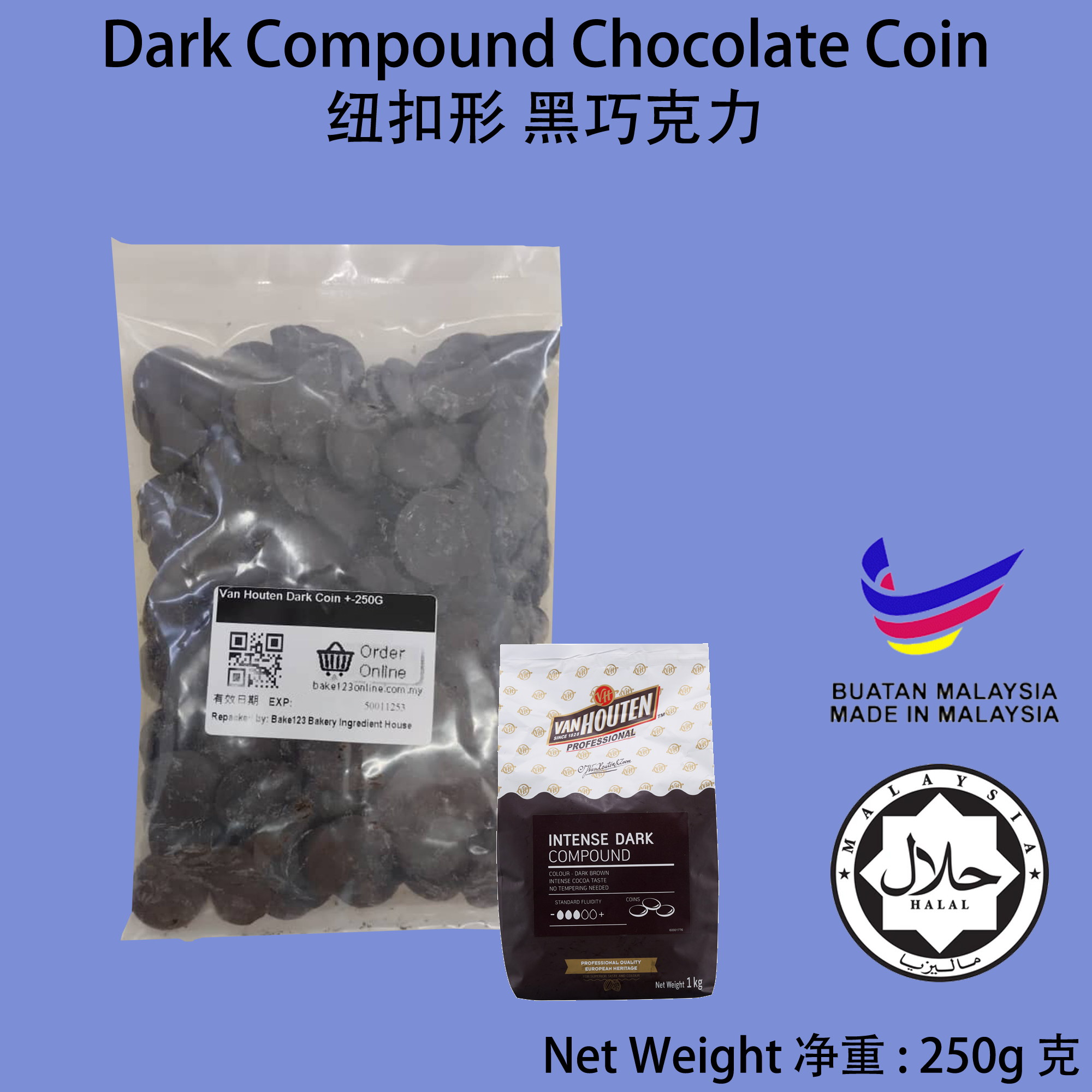 Product Name : Van Houten Dark Compound Chocolate Coin 纽扣形 黑巧克力 Net Weight 净重 : 250g 克