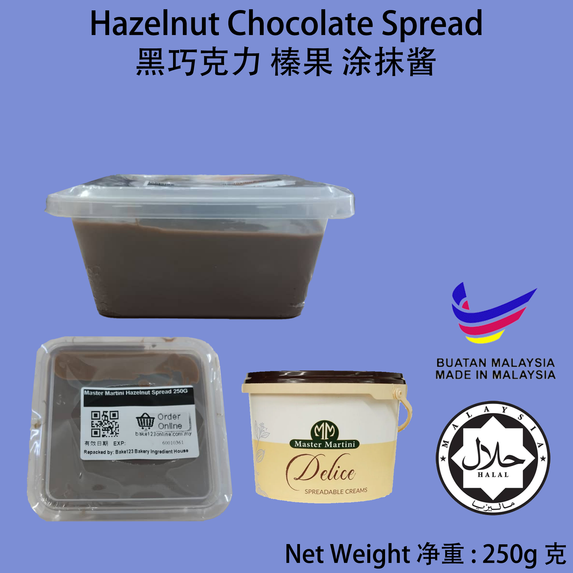 Product Name / 产品名称: Master Martini Dark Chocolate Hazelnut Spread 黑巧克力榛子酱 Net Weight / 净重 : 250g