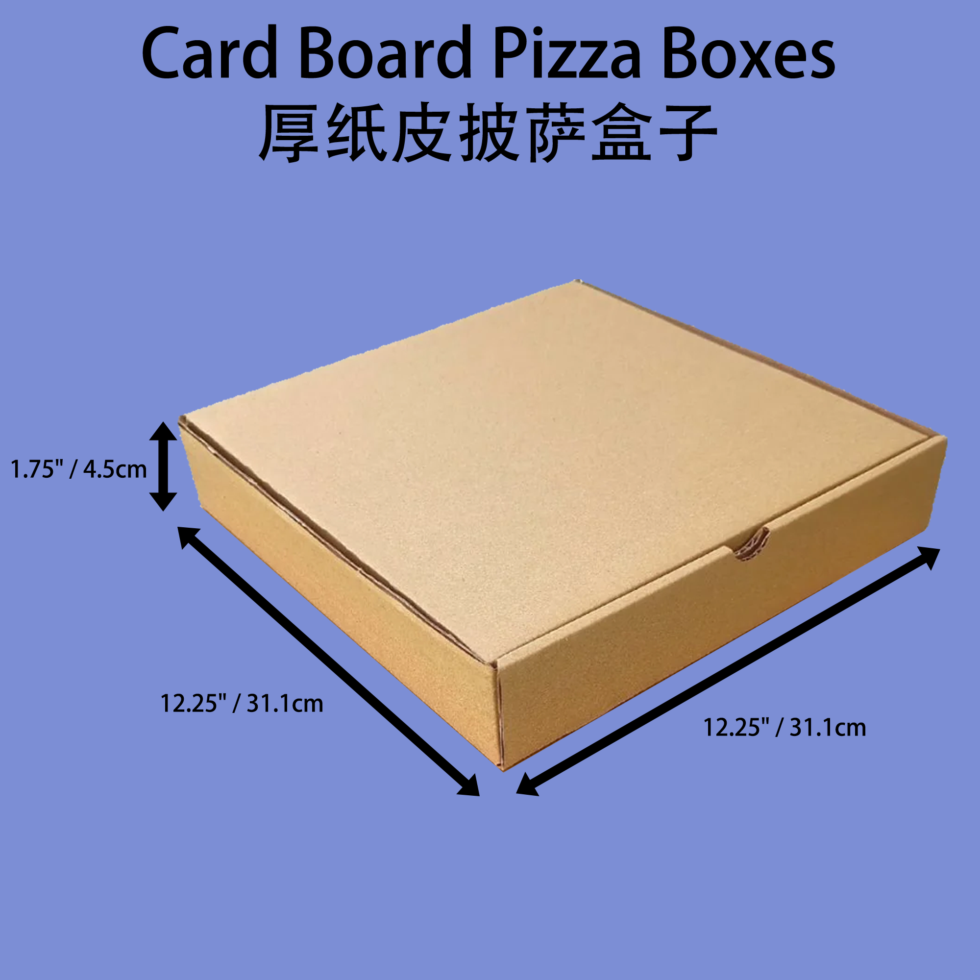 Features 特点: - Durable Cardboard Construction 耐用的纸板结构: This pizza box is crafted from sturdy and durable cardboard material, ensuring that your pizzas remain intact and secure during transport. 采用坚固耐用的纸皮材料制成,确保您的披萨在运输过程中保持完好无损。 - Standard Size 标准尺寸: With dimensions of 12.25 inches by 12.25 inches by 1.75 inches, this pizza box is suitable for holding most standard-sized pizzas, providing ample space for your delicious creations. 尺寸为12.25英寸×12.25英寸×1.75英寸,适用于大多数标准尺寸的披萨,为您美味的创作提供充足的空间。 - Foldable Design 折叠设计: The pizza box features a foldable design for easy assembly and storage. Simply fold along the creases to assemble the box quickly and efficiently. 披萨盒采用折叠设计,便于组装和存储。只需沿着折痕折叠,即可快速高效地组装盒子。 - Secure Closure 安全关闭: Equipped with flaps and tabs, this pizza box ensures a secure closure to keep your pizzas hot and fresh until they reach their destination. The tabs provide added stability during transportation. 配有盖翼和标签,确保安全关闭,让您的披萨在送达目的地之前保持热气腾腾、新鲜美味。标签在运输过程中提供额外的稳定性。