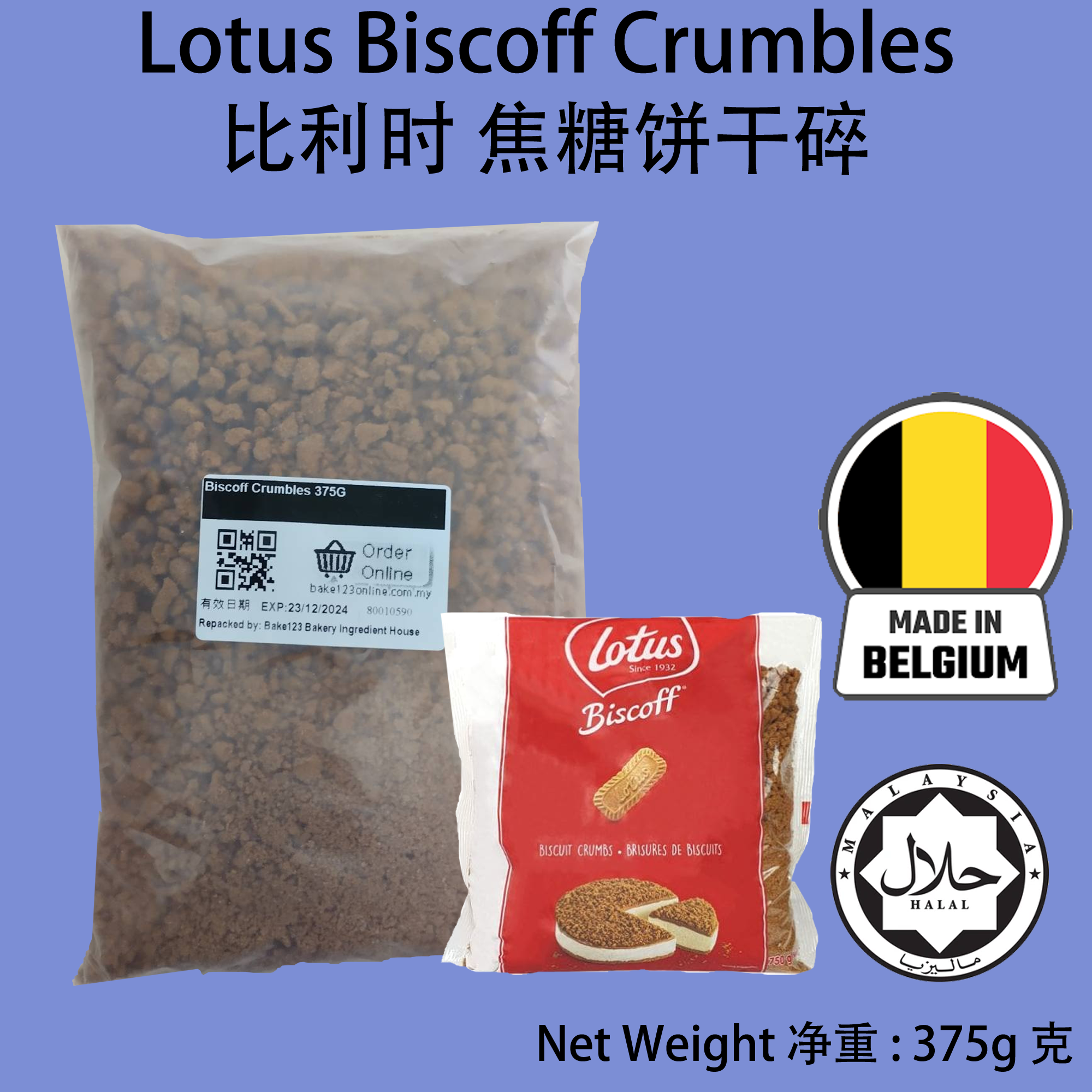 Product Name/产品名称: Lotus Biscoff Crumbles 比利时 焦糖饼干碎